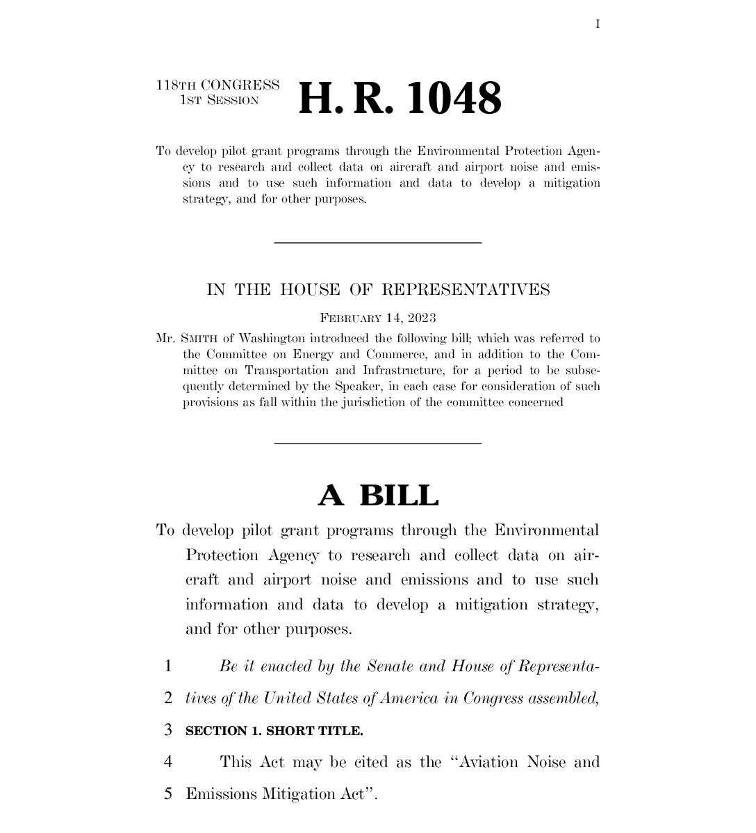 H.R.1048 – Aviation Noise and Emissions Mitigation Act