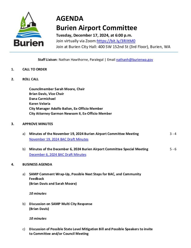 Burien Airport Committee Agenda 20241217