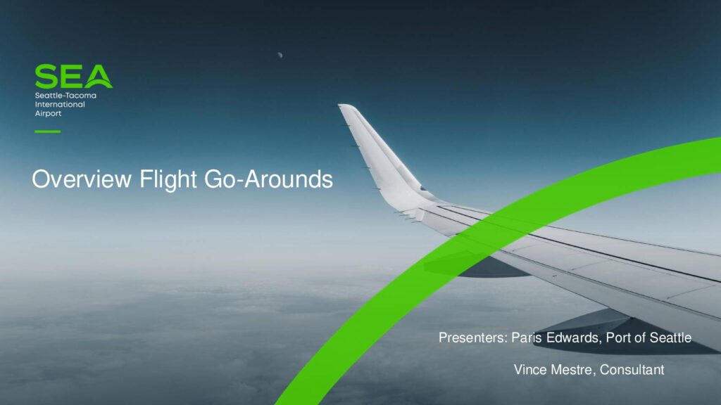 Go‐arounds are part of normal aviation practice and are a basic tool for pilots and controllers to ensure safety is not compromised during approach and landing. Scenarios when a go around may be initiated: • A go-around may be requested by the pilot or tower initiated by FAA Air Traffic Control • Typically initiated if a pilot or FAA air traffic controller is not satisfied that the requirements for a safe landing. • Unstable approach due to many factors, including adverse weather conditions • Loss of separation on final approach Flight Go-Arounds: SEA and Other Airports FAA Air Traffic by Numbers Report (data collected from FY 17-19, FY23)*: -Annual average: 0.39% of all aircraft arrivals SEA (data collected by Noise Office from 2017 – 2024 thru Sep) -Annual average: 0.4% of all aircraft arrivals *FAA data is collected from 30 core US airports, FAA Air Traffic by the Numbers May 2024 Flight Go-Arounds: SEA and Other Airports Flight Go-Arounds: SEA and Other Airports SEA Go- Arounds 2017 -2024 LAX Go-Arounds June 2023 - June 2024 San Diego Go-Arounds 2023 Flight Go-Arounds: Summary Go-arounds are a normal aviation practice to ensure a safety is not compromised during final approach • SEA averages 2-3 go-arounds per day • SEA's go-around rate is not unusual or excessive when compared to other commercial airports • Typically, there are higher rates of go-arounds during the fall and winter months Slide 1: Overview Flight Go-Arounds Slide 2: Flight Go-Arounds: What is it? Slide 3: Flight Go-Arounds:…