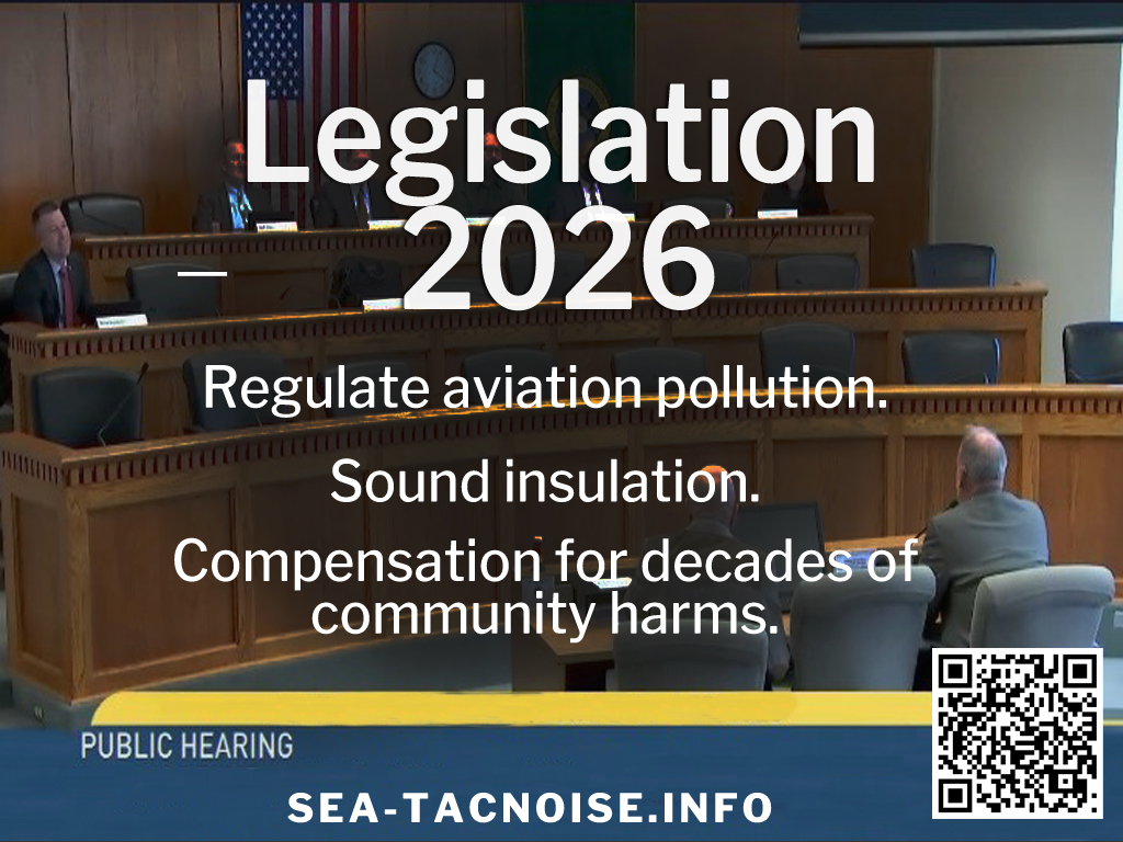 Last year we supported the CURB Act (HB1303) and we continue to do so. It aims to improve environmental justice and public health by requiring the Department of Ecology to incorporate environmental justice considerations into their environmental review process. Although originally not written for Sea-Tac, its goals are a perfect match for airport communities.