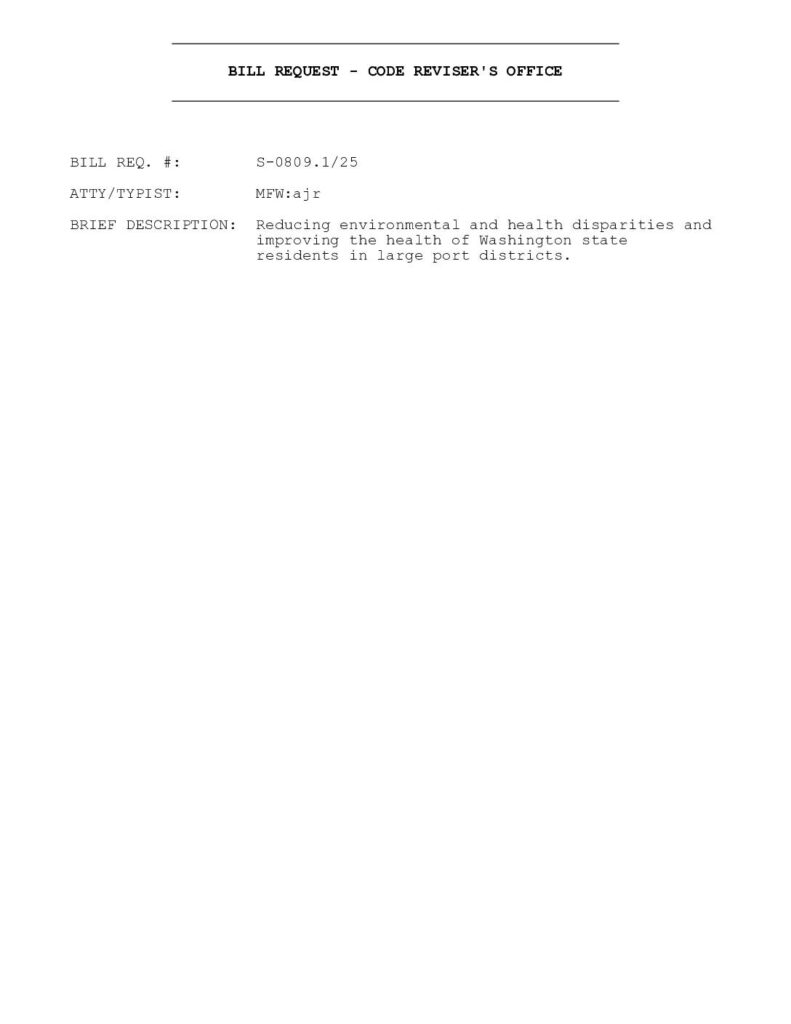 BRIEF DESCRIPTION: Reducing environmental and health disparities and improving the health of Washington state residents in large port districts. AN ACT Relating to reducing environmental and health disparities 1 and improving the health of Washington state residents in large port 2 districts; and adding a new chapter to Title 53 RCW.3 BE IT ENACTED BY THE LEGISLATURE OF THE STATE OF WASHINGTON:4 NEW SECTION. Sec. 1. The definitions in this section apply 5 throughout this chapter unless the context clearly requires 6 otherwise.7 (1) "Cumulative environmental health impact" has the same meaning 8 as in RCW 70A.02.010.9 (2) "Environmental benefits" has the same meaning as in RCW 10 70A.02.010.11 (3) "Environmental harm" has the same meaning as in RCW 12 70A.02.010.13 (4) "Environmental impacts" has the same meaning as in RCW 14 70A.02.010.15 (5) "Evidence-based" has the same meaning as in RCW 70A.02.010.16 (6) "Overburdened communities" has the same meaning as in RCW 17 70A.02.010.18 (7) "Qualifying port district" means a port district authorized 19 to undertake programs for the abatement of aircraft noise under RCW 20 53.54.010.21 Code Rev/MFW:ajr 1 S-0809.1/25 (8) "Significant port action" means any action involving a 1 capital improvement project, purchase, or construction of $8,000,000 2 or more in value or any action that increases the number of gates at 3 an airport.4 (9) "Vulnerable populations" has the same meaning as in RCW 5 70A.02.010.6 NEW SECTION. Sec. 2. (1) A qualifying port district must 7 include an environmental justice implementation plan within its 8…