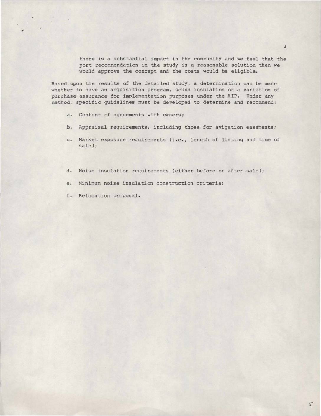 This document outlines FAA guidelines for implementing noise mitigation programs under the Airport Improvement Program (AIP). It details requirements for developing specific guidelines covering acquisition programs, sound insulation, purchase assurance, and various implementation criteria including appraisals, market exposure, and relocation proposals.
