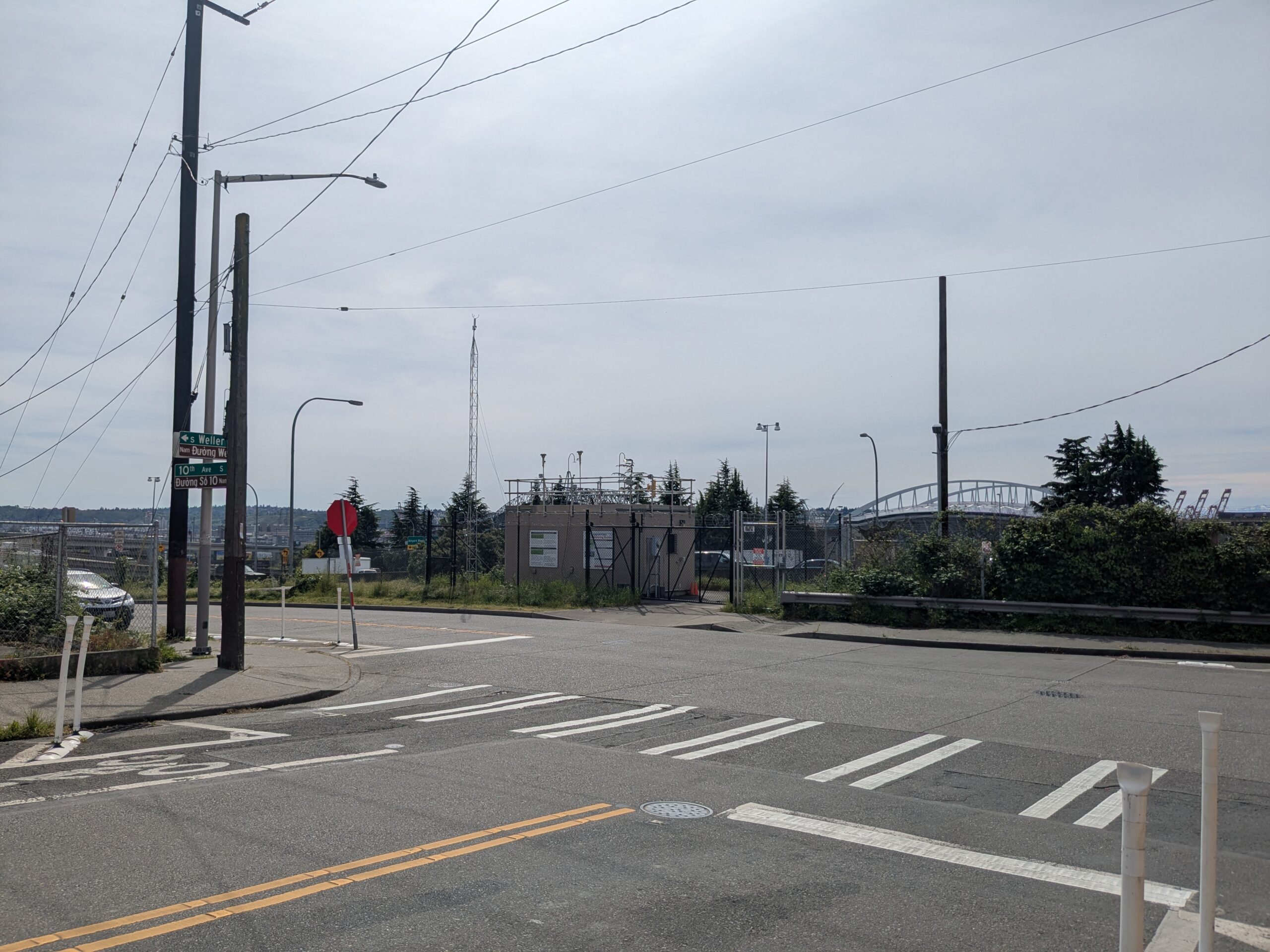 Corner of 10th Ave S and S Weller St, Seattle — location of the air quality monitoring station near Sea-Tac flight path.