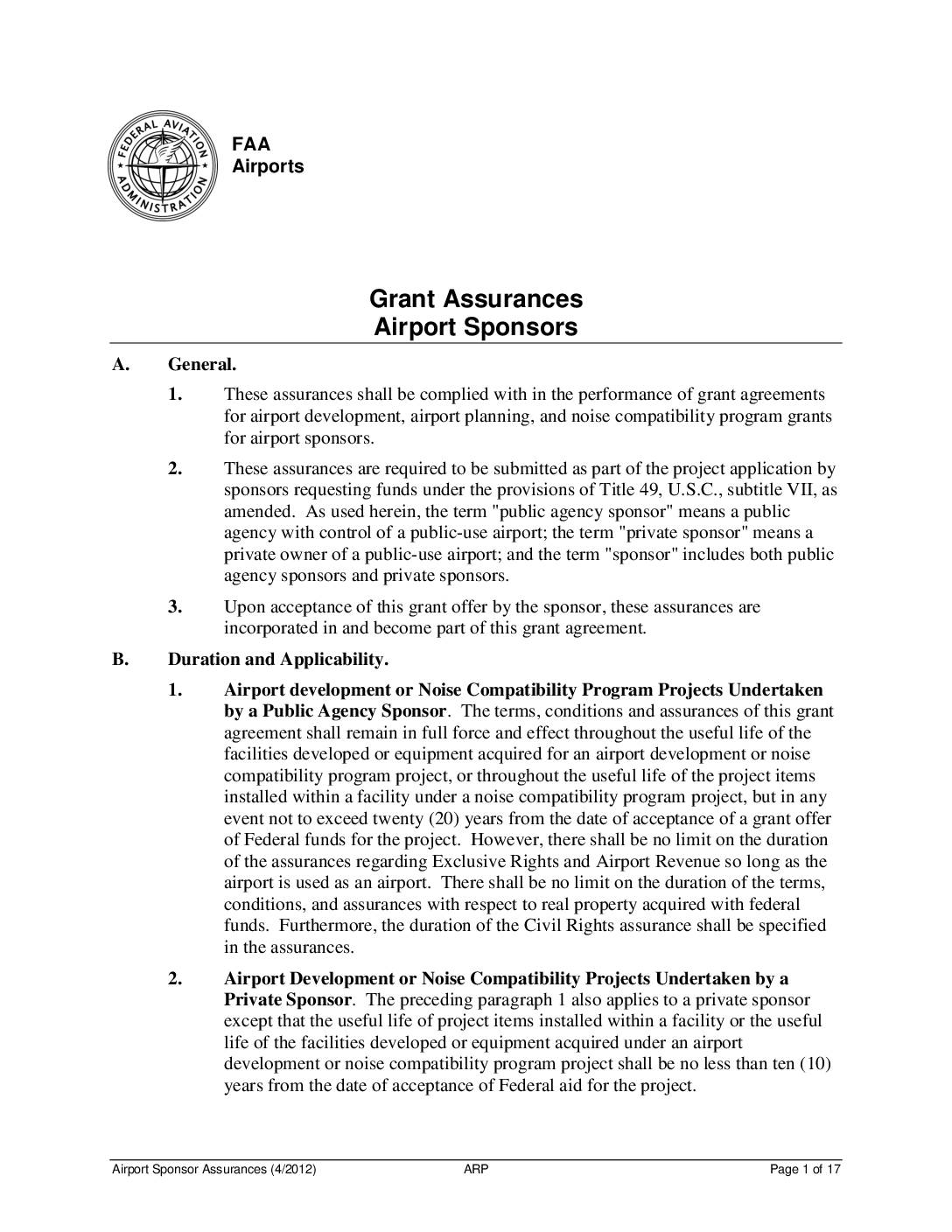 Airport Sponsor Assurances (4/2012) ARP Page 1 of 17 FAA Airports