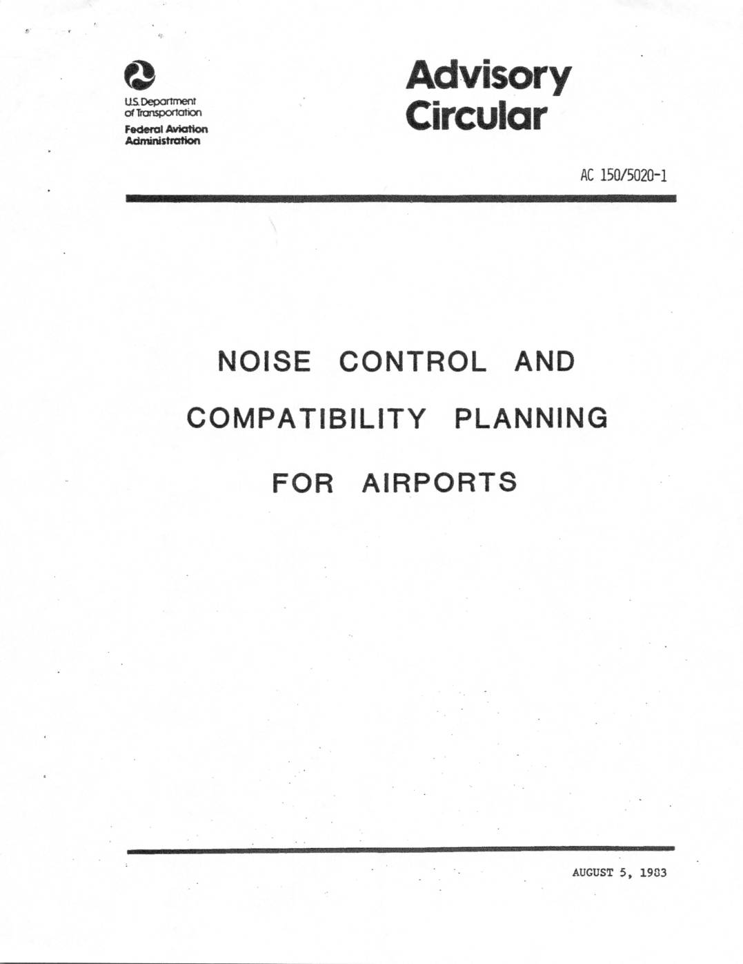 BAC SP FAA Advisory Circular Noise Control And Compatibility Planning For Airports Ac 150 – 200 1 19830805 0001
