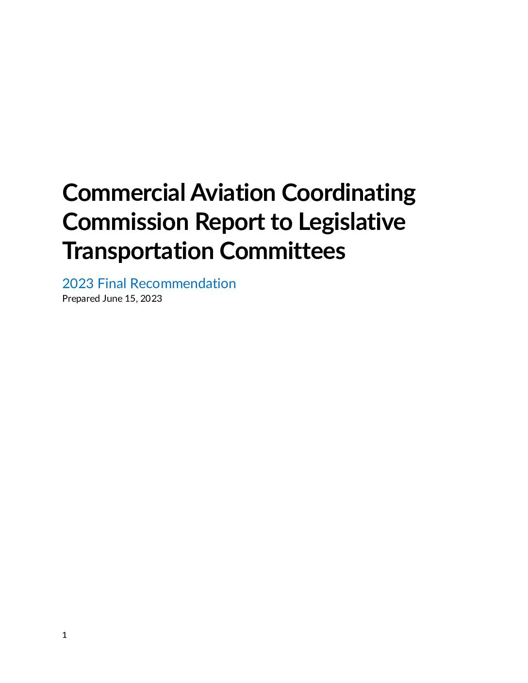 Per SSB 5370 (2019), as revised by SSB 5165 (2021), the following survey information below is provided as the final report to the Legislature from the Commercial Aviation Coordinating Commission (CACC). At the onset, it is important to note that as a result of legislative action in 2022, the timeline for the Commission’s work was extended to June 15, 2023. Executive summary The Commercial Aviation Coordinating Commission’s final hybrid in-person and online meeting June 9, 2023, focused on how to ensure that the work of the CACC provides a solid foundation and baseline of information to be used by the follow-on work group established by ESHB 1791. The CACC voted to use their last survey as the final report to the Legislature. This report has the survey results and comments for the work group in ESHB 1791 to use as a guide as they continue the work CACC started. https://app.leg.wa.gov/billsummary?BillNumber=5370&Year=2019 https://app.leg.wa.gov/billsummary?BillNumber=5165&Year=2021 https://wsdot.wa.gov/travel/aviation/commercial-aviation-coordinating-commission https://wsdot.wa.gov/travel/aviation/commercial-aviation-coordinating-commission https://app.leg.wa.gov/billsummary?BillNumber=1791&Year=2023 Survey Overview Note: The data and commentary in the survey below is subjective and to be used as a guide for the upcoming work group in ESHB 1791. The 16-question survey was completed by 16 Commissioners: 10 voting members and 6 non- voting members. The majority did not prefer a “No Action” alternative as the CACC’s response to the Legislature and believe the future of commercial aviation capacity needs (passenger and cargo) can only be met with a greenfield site that has yet to be identified. The majority also believe Paine Field will continue to add…