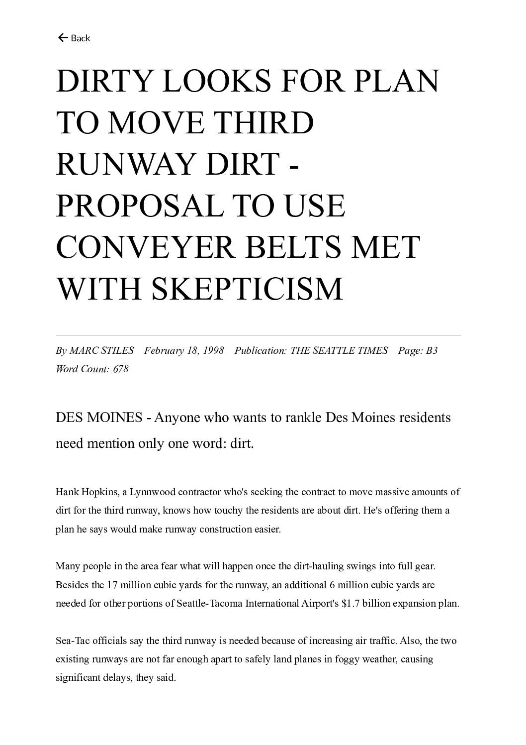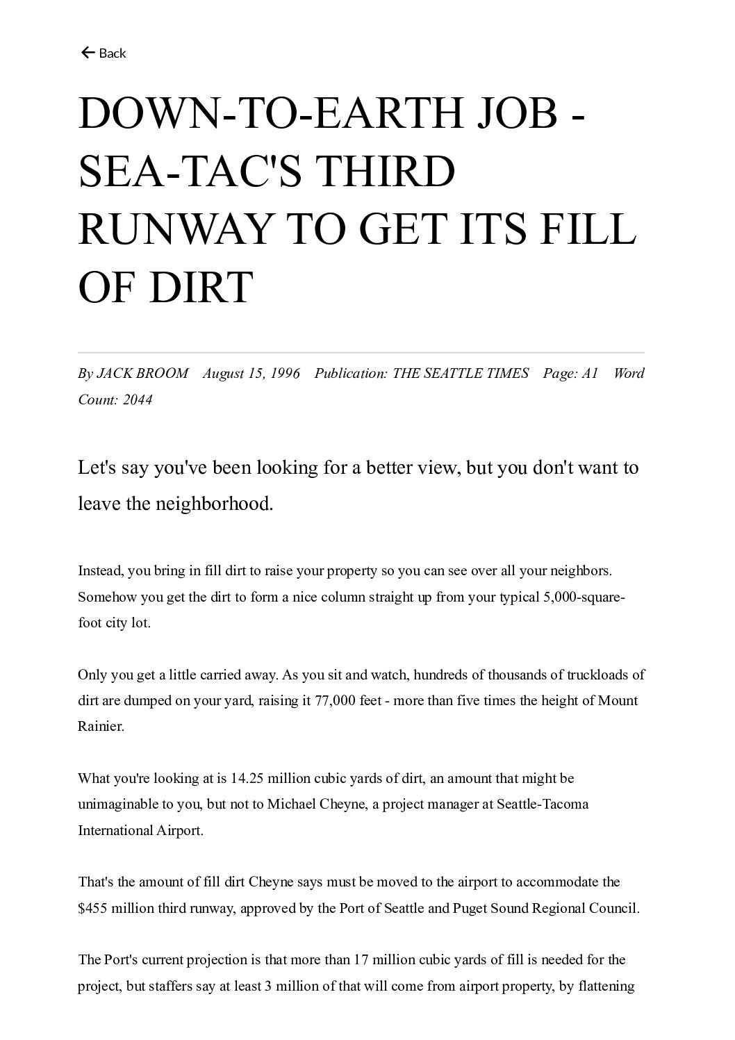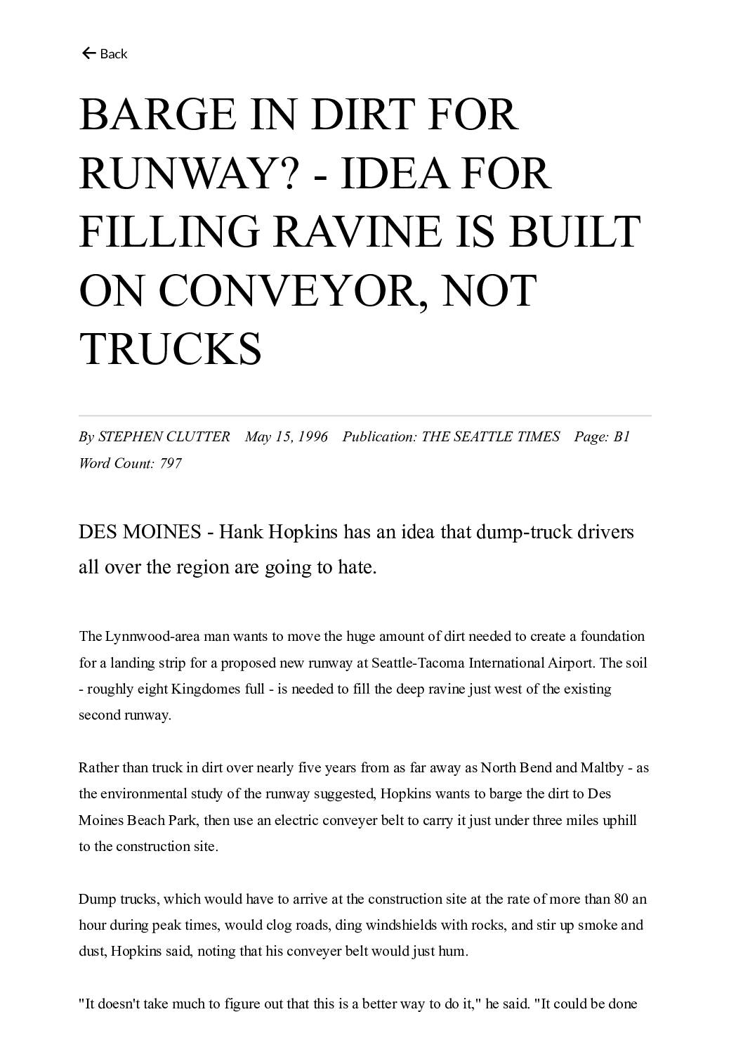 Seattle Times – 1996-05-15 Conveyor Barge In Dirt For Runway