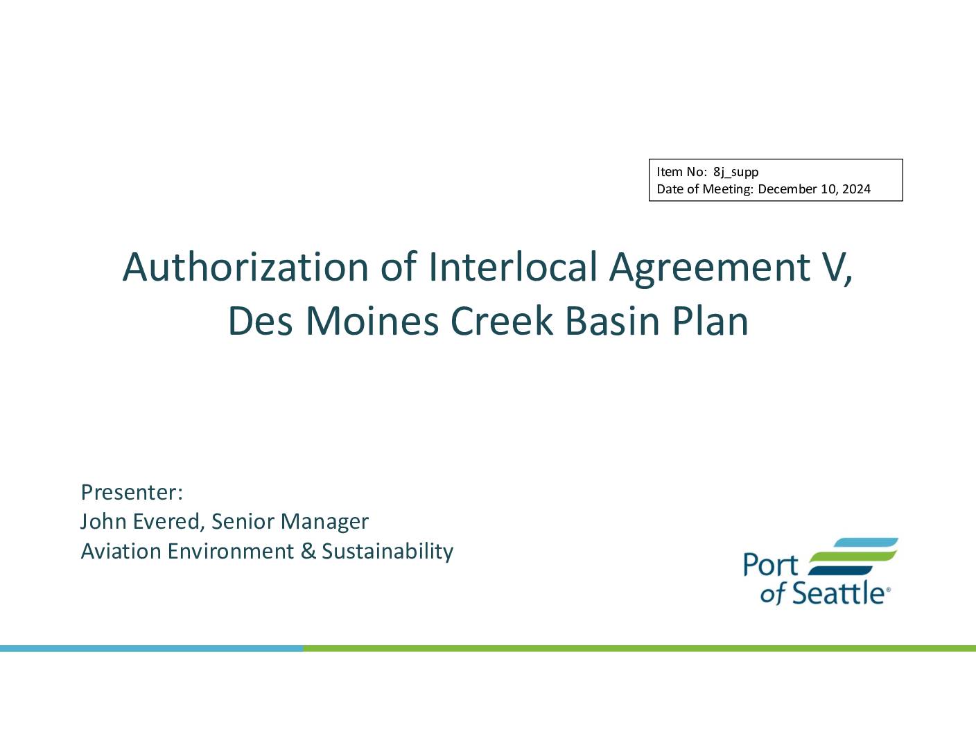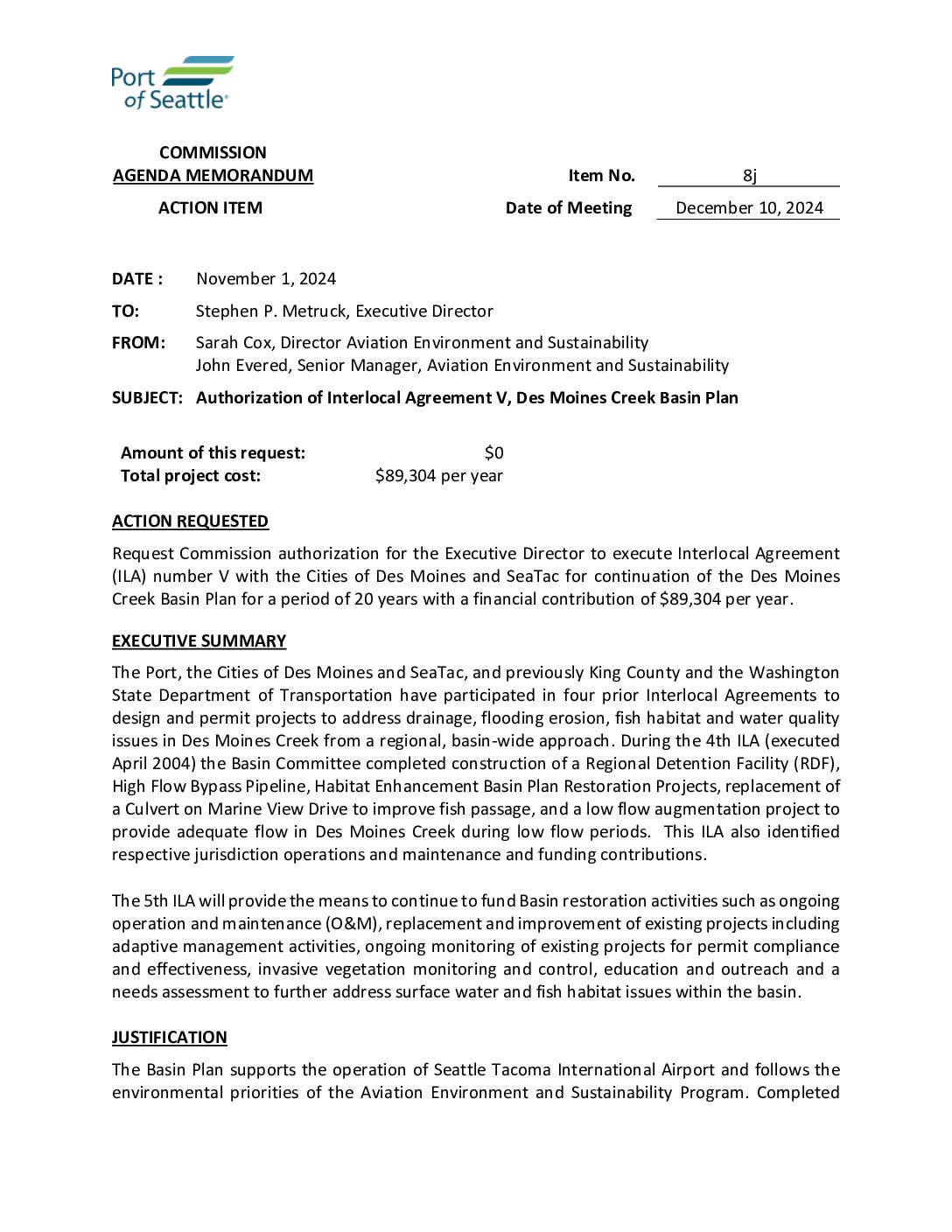 2024 12 10 RM 8j Memo Des Moines Creek Basin Plan ILA V5