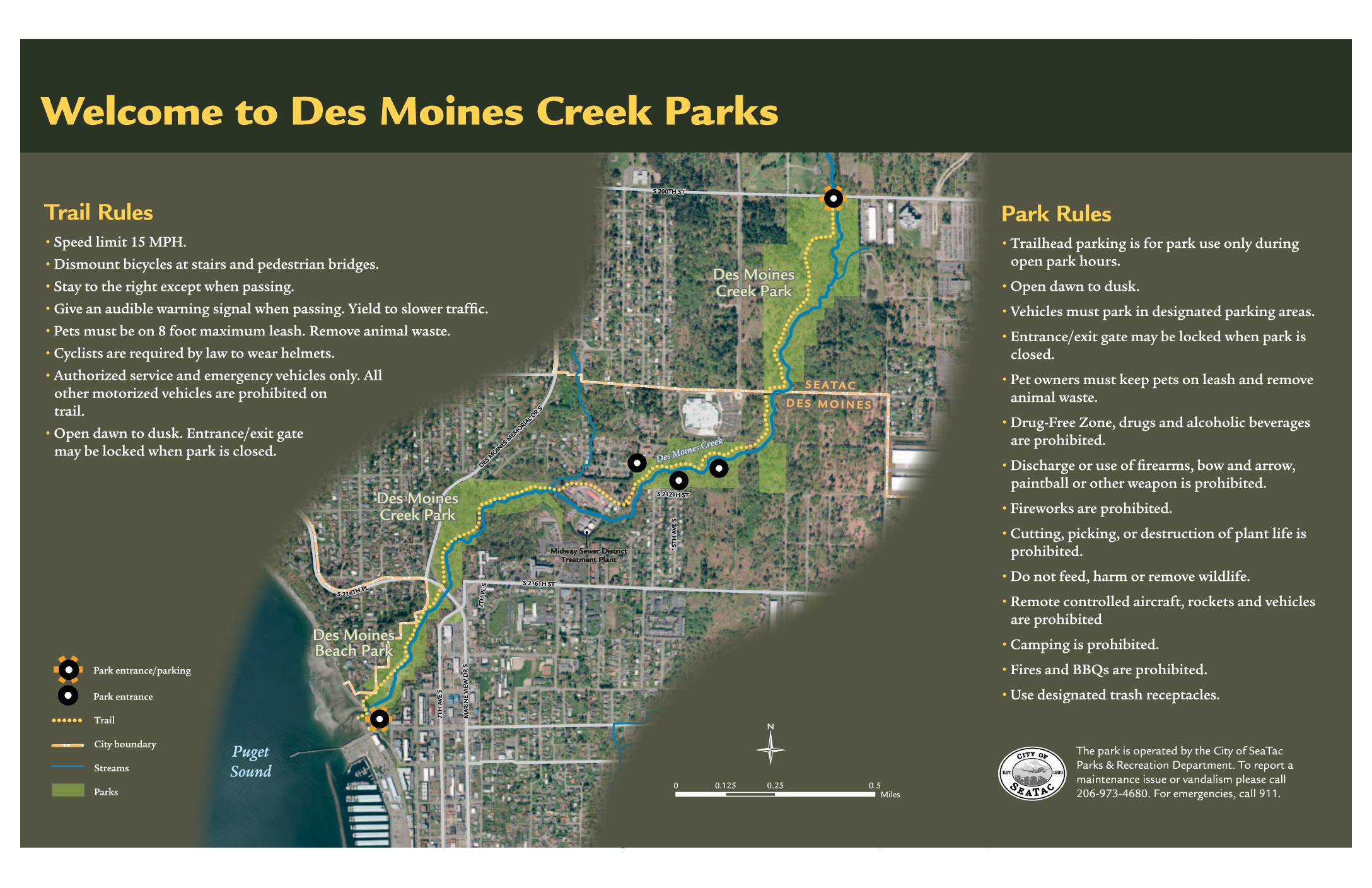 Commission misses opportunity to protect and maintain Des Moines Creek Trail Our comments on Item 8j ( Memo , Presentation ) where the Port Commission voted to renew the Des Moines Creek Basin Plan V5. The original 1997 plan came out of two practical concerns: hydrology and environmental. The airport plateau is the source of most -