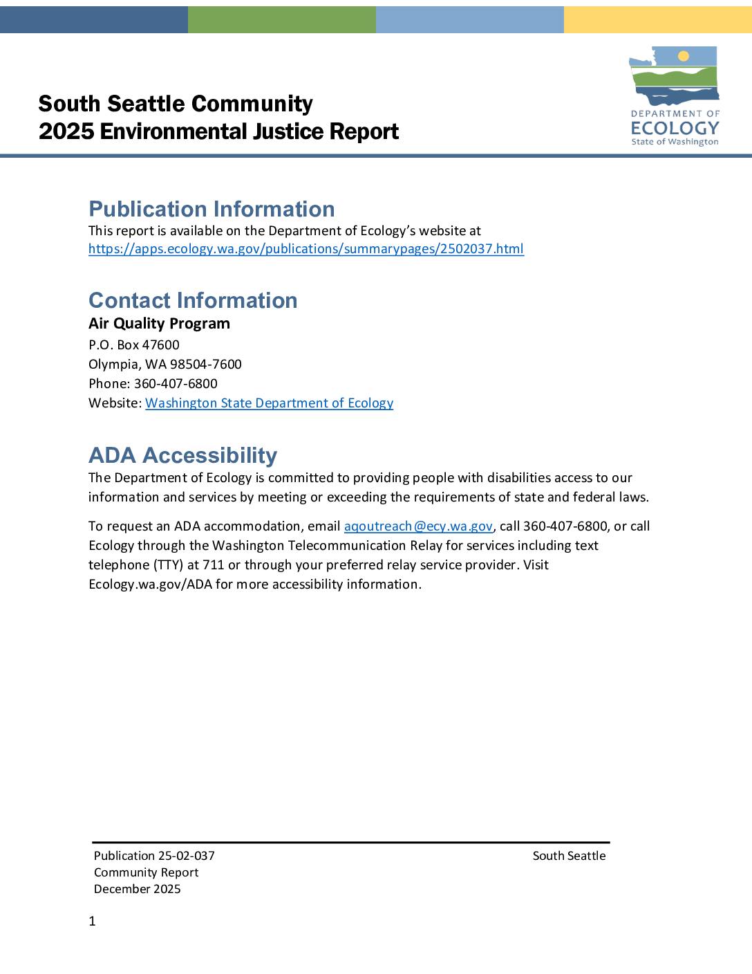 South Seattle Community 2025 Environmental Justice Report