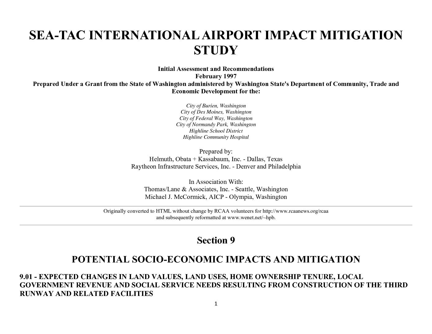 Sea-Tac International Airport Impact Mitigation Study – summary from RCAA