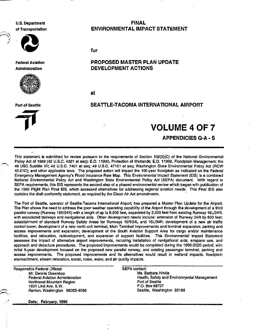 Sea-Tac Airport Final EIS, Feb. 1996, Vol. 1 of 7