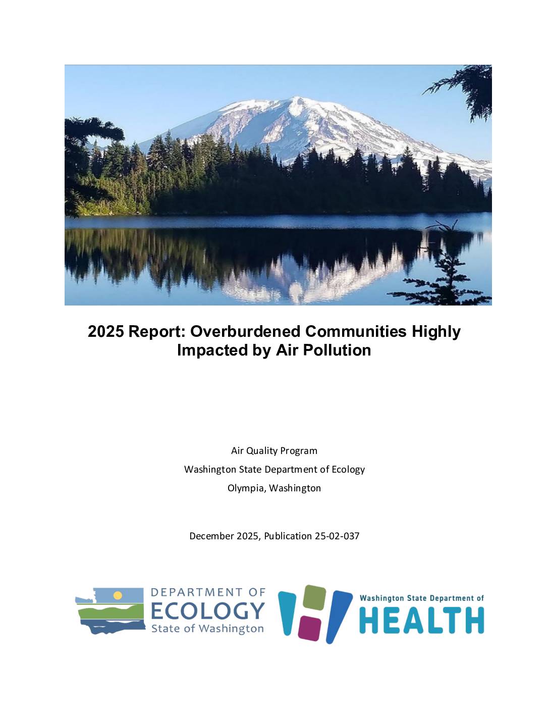 A report by the Washington State Department of Ecology’s Air Quality Program examining overburdened communities that are highly impacted by air pollution. The document includes publication information, contact details for regional offices, and ADA accessibility information.