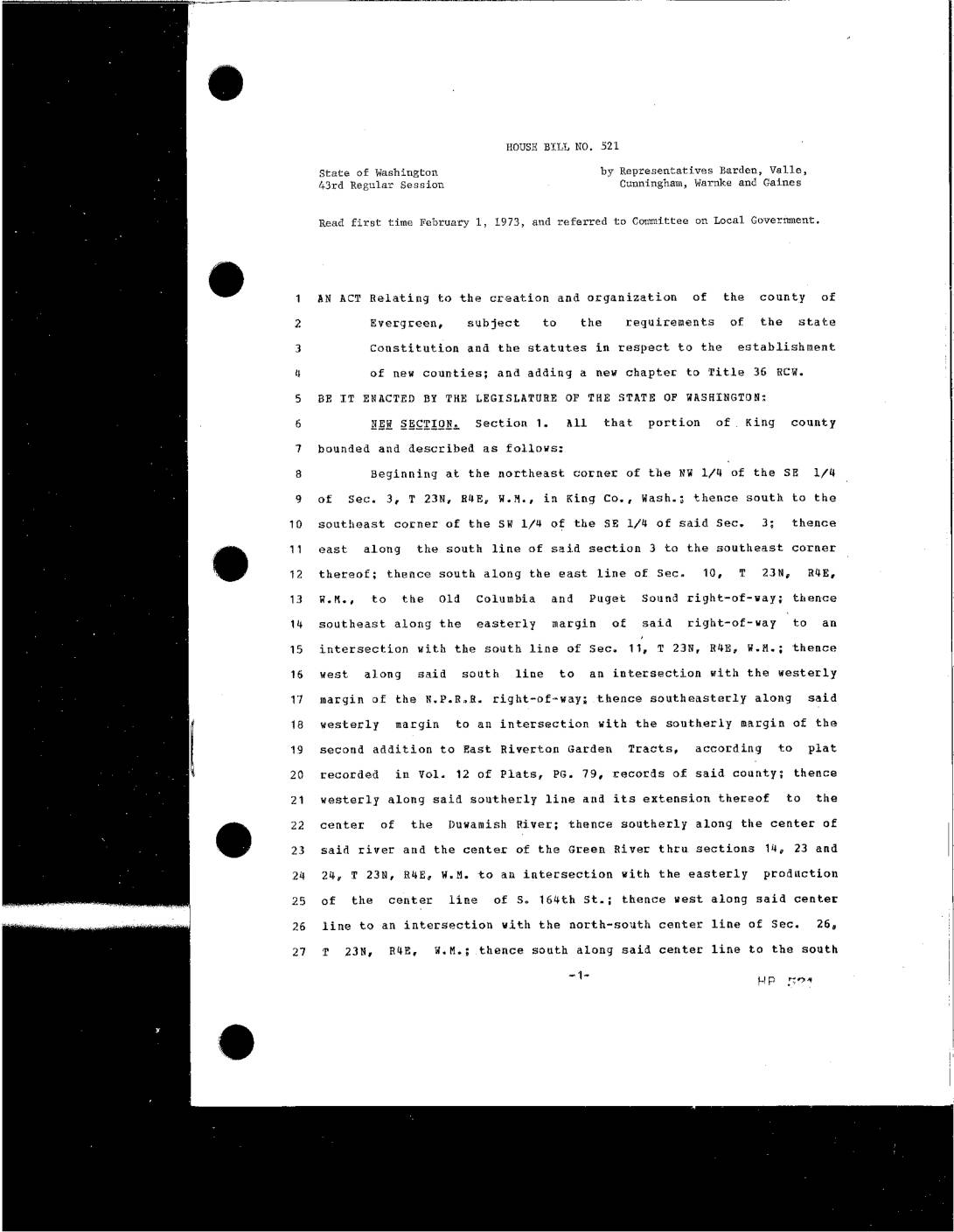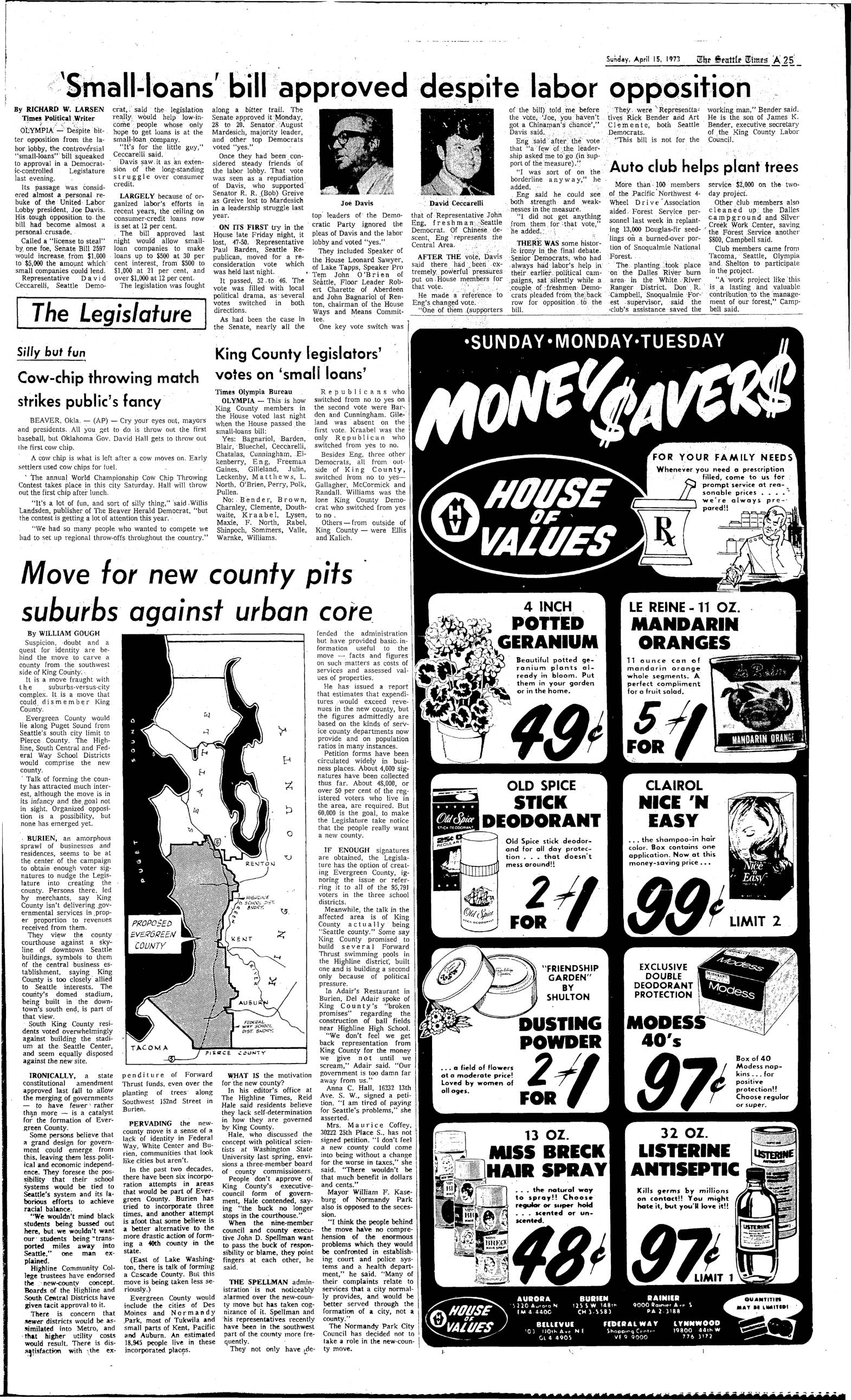 Seattle Times – Proposed Evergreen County, April 15, 1973