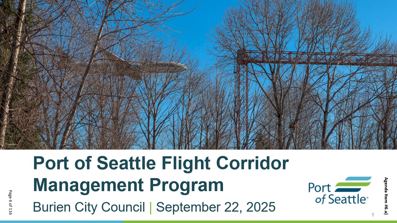 Mathison Park Trees Update: The Burien City Council unanimously approved sending the Port of Seattle Commission a request that they hold a special meeting to discuss the proposed removal of trees under the Port’s Flight Corridor Management Program, including six mature trees in Burien’s Mathison Park. The letter sent to the Port Commission also requests