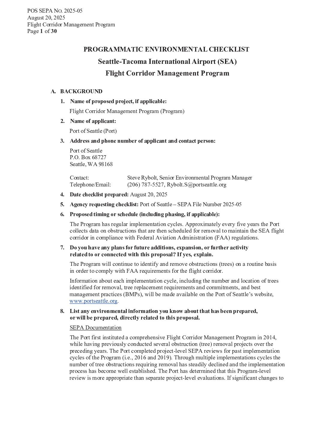 SEPA Flight Corridor Management Program Checklist 20250820 w Attachments
