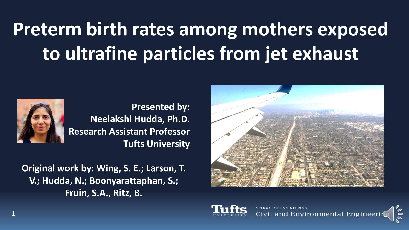 Original work by: Wing, S. E.; Larson, T. V.; Hudda, N.; Boonyarattaphan, S.; Fruin, S.A., Ritz, B. Corresponding peer-reviewed publication: Wing, S. E.; Larson, T. V.; Hudda, N.; Boonyarattaphan, S.; Fruin, S.A., Ritz, B. Preterm Birth among Infants Exposed to in Utero Ultrafine Particles from Aircraft Emissions. Environ. Health Perspect. 2020, 128 (4), 047002. https://ehp.niehs.nih.gov/doi/full/10.1289/EHP5732 Also see: Move Over, Traffic: Aircraft Emissions and Preterm Birth, Konkel et al., EHP Science Selection, 2020 https://doi.org/10.1289/EHP7161 Sam Wing Clinical Research Administrator City of Hope, Los Angeles, CA Beate Ritz Professor, Dept. Of Epidemiology Univ. of California Los Angeles, CA Scott A Fruin Assistant Professor, Dept. Of Preventive Medicine Univ. of Southern California Los Angeles, CA Timothy V. Larson Professor, Dept. of Civil and Environmental Engg. Univ. of Washington, Seattle, WA Sarunporn Boonyarattaphan Dept. of Civil and Environmental Engg. Univ. of Washington, Seattle, WA ~700 airports Population within 3 miles of all these airports: 34 million >3m enplanements: 6.2 million >10m enplanements (23 airports): 3.2 million BUT these are the largest of the airports with large impact zones! Population within 10 miles of top 23 airports: 33.3 million USA Airports Total Enplanements o 10,000,001 - 38,893,670 o 3,000,001 - 10,000,000 o 257 - 3,000,000 3 Research has implications for large populations in near-airport communities that rank high on environmental justice metrics Approximately 10% births in the United States are preterm increasing the infant’s risk for developing complications. Exposure to ambient air pollution during pregnancy has been identified as…