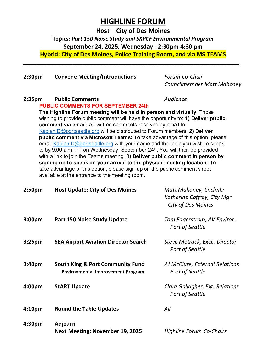 Highline Forum November 19, 2025 (SeaTac City Hall)