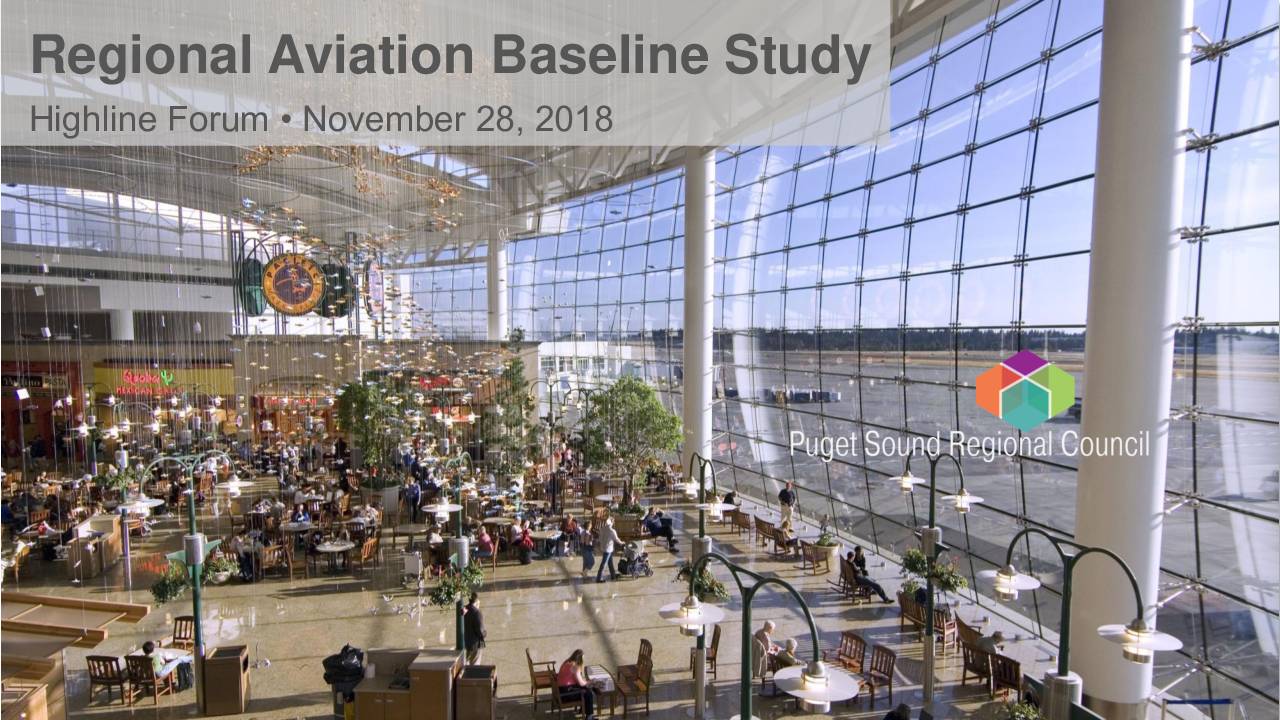 The central Puget Sound region is booming 4.1 million people 3.7 million people Jobs and a strong economy generate growth 2.3 million jobs 1.9 million jobs Aviation demand – SeaTac passenger volumes 46.9 million passengers 32.8 million passengers PSRC’s role in the region Getting ready for 2050 5.8 million people 4.1 million people 3.4 million jobs 2.3 million jobs airports in the central Puget Sound region • 3 commercial service and air cargo airports (SEA, BFI, and PAE) • 3 industrial airports supporting aerospace manufacturing • 5 seaplane bases • 2 military airports • Multiple general aviation facilities Air passenger service – SeaTac Air passenger service – Paine Field Air cargo Aerospace manufacturing – Boeing Field Aerospace manufacturing – Paine Field Aerospace manufacturing – Renton Military needs – Joint Base Lewis-McChord Military needs – Naval Air Station Whidbey Island • Build off of master planning efforts at the region’s airports • Along with demand and capacity analysis, provide community perspectives • Not a siting study! • Prepare regional and state leaders for the next phase of planning • Study overseen by PSRC’s Executive Board Regional Aviation Baseline Study Thank you Josh Brown jbrown@psrc.org -