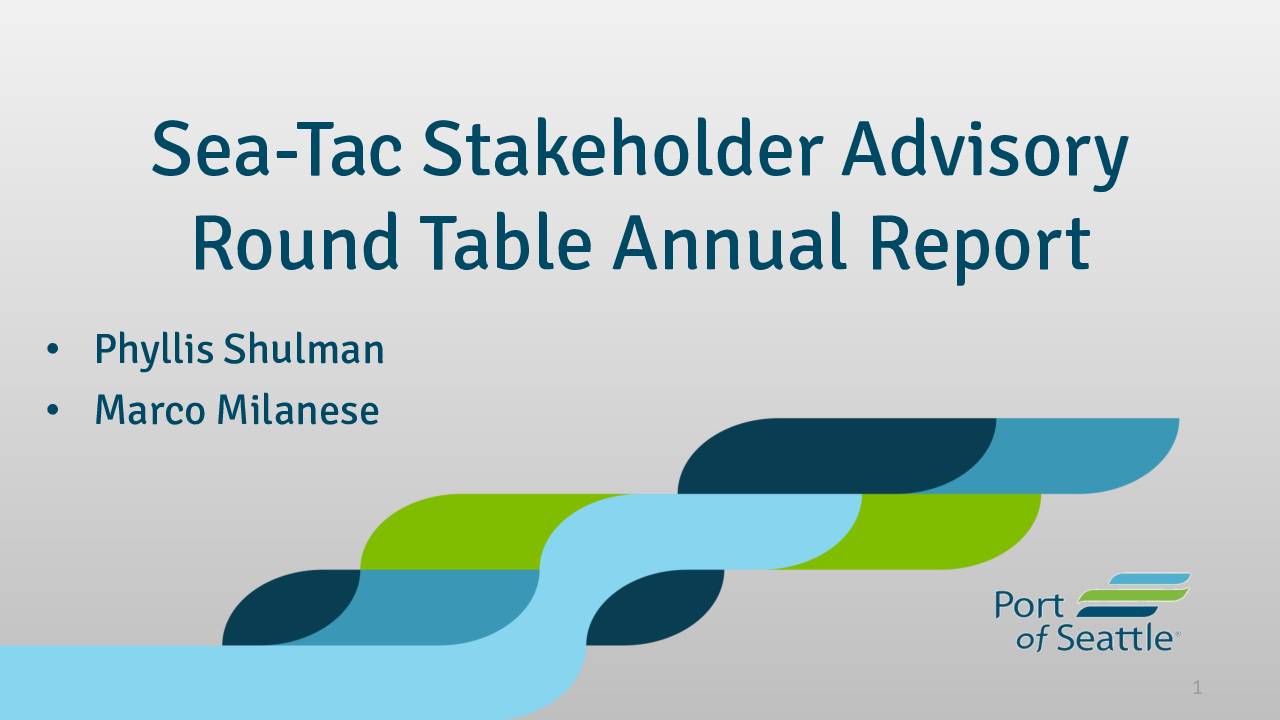 • StART was created to establish a forum to: – Strengthen and improve relationships with six neighboring communities – Begin to work together to more cooperatively identify issues and possible solutions • StART’s development began mid-2017 Sea-Tac Stakeholder Advisory Round Table StART’s Structure • Cities appointed two community members and one city employee to serve • Airport’s Managing Director is the chair • Alaska, Delta and Lynden also serve Sea-Tac Stakeholder Advisory Round Table StART’s Structure • FAA provides agency expertise • Employs an independent, neutral facilitator • Reports up to the Highline Forum Sea-Tac Stakeholder Advisory Round Table Development of StART Priorities • Early conversations with cities • Discussion at inaugural meeting • Follow-up individual member survey • Continuing discussion at meetings Sea-Tac Stakeholder Advisory Round Table StART’s Meeting Progress Sea-Tac Stakeholder Advisory Round Table Development of StART Priorities • Prevention/reduction of aviation noise identified as Priority #1 • Focus on near-term efforts to explore and potentially implement • Creation of working group and hiring of a noise consultant Sea-Tac Stakeholder Advisory Round Table Aviation Noise Working Group • Potential near-term actions to prevent & reduce noise: – Runway Use Plan Agreement – Late Night Noise Limitation Program – Glide Slope Analysis – Airfield Noise Assessment Sea-Tac Stakeholder Advisory Round Table Runway Use Plan Agreement • Revise & update the current agreement • New language: – “During regular late night operations (12 AM to AM) in normal weather patterns, the FAA plans to reduce its use of the 3rd… -