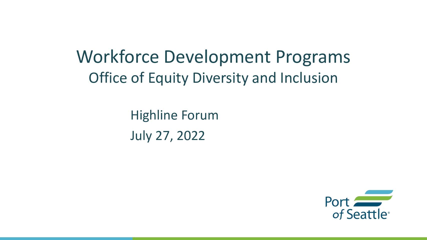 Highline Forum 220727 Port Workforce Development
