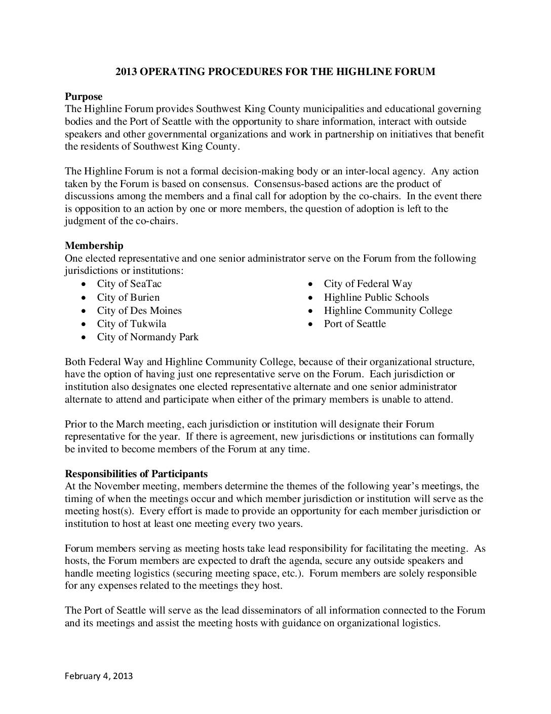 • Highline Forum – Operating Procedures, 2013