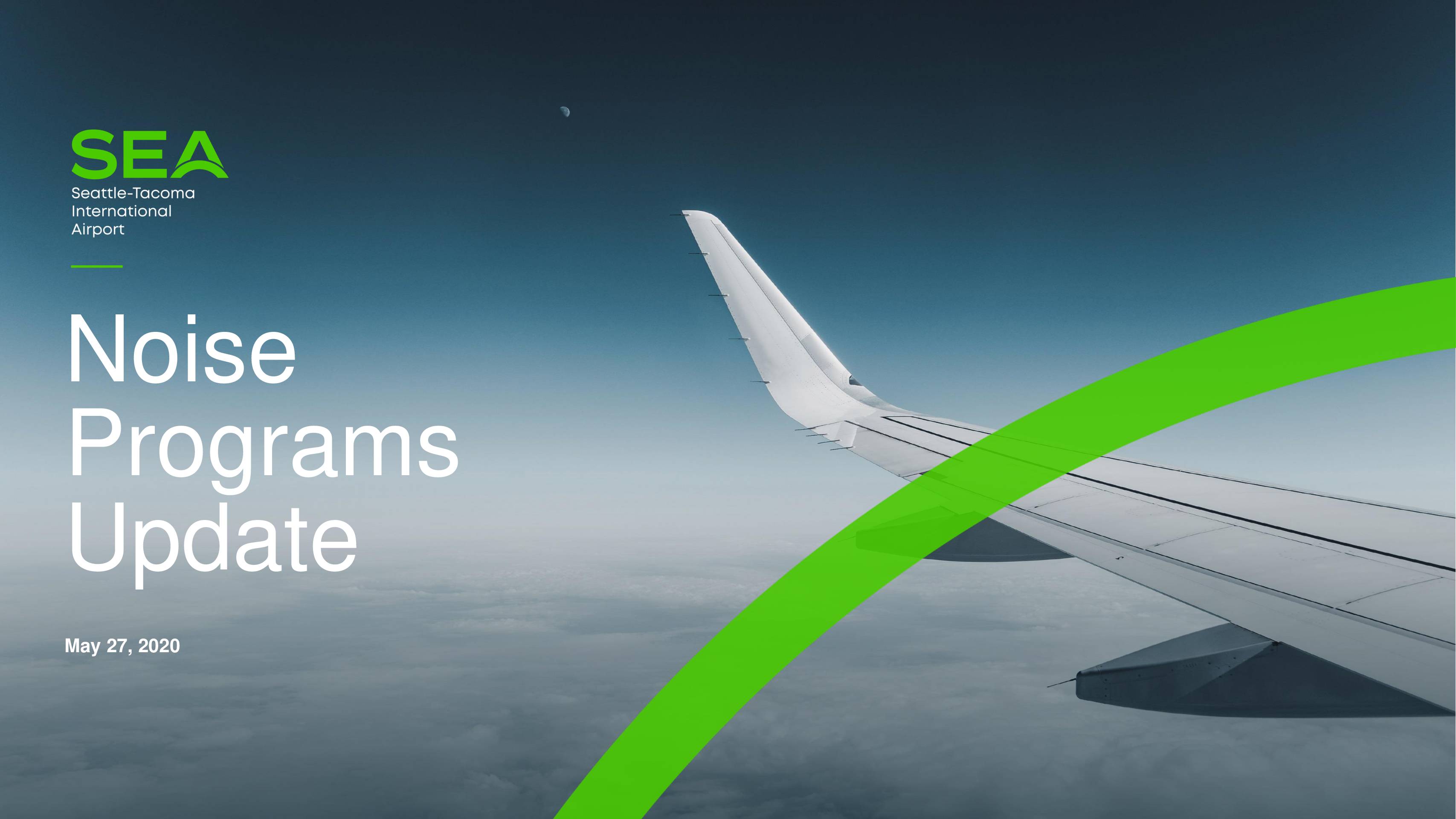 • Citizen noise complaints – averaging 400/day • Noise Abatement Corridor Monitoring – 98% compliance • Aircraft Engine Testing Nighttime Restrictions – 2 violations in 2020 • Late Night Noise Limitation Program – Averaged 11 exceedances per night, Q1 2020 • Fly Quiet Program – airlines to be notified later this year • Portable/temporary noise monitors – installing first one later this year Noise Mitigation Programs • COVID-19 has affected the Port’s sound insulation programs • Single-family sound insulation – Construction Q2 2021 (estimated) • Condominium sound insulation – Villa Enzian construction Q1 2021 (estimated) • “Acceleration” – Preparing to set up in 2021 Operated by the Port of Seattle FlySEA.org Thank You! -