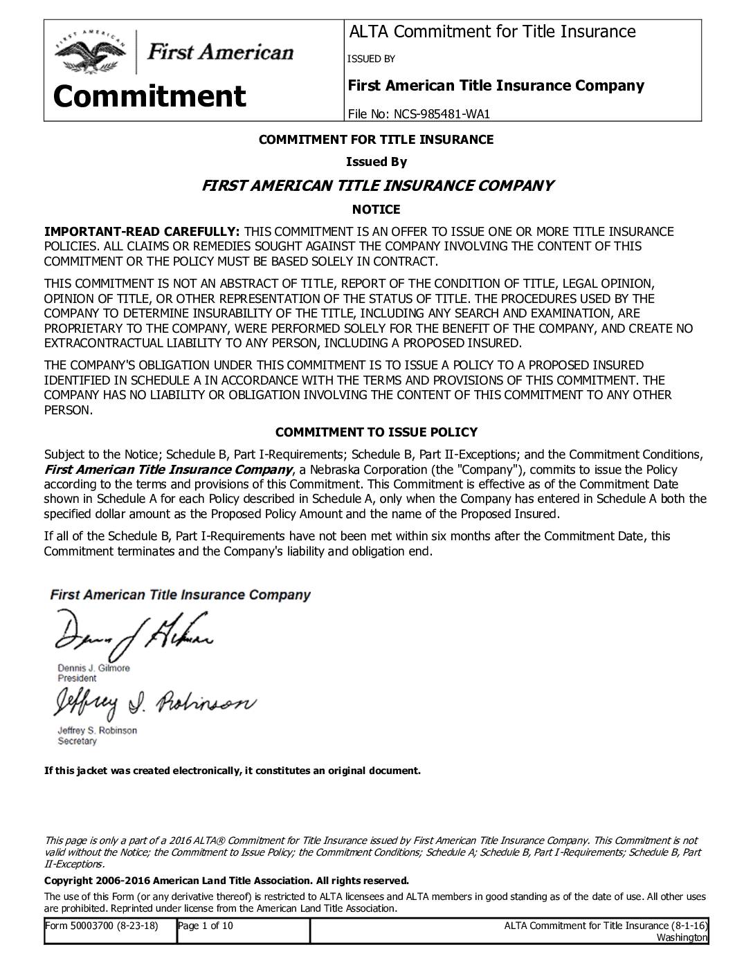 Hillgrove Cemetery ALTA Commitment for Title Insurance