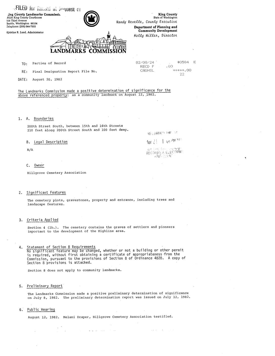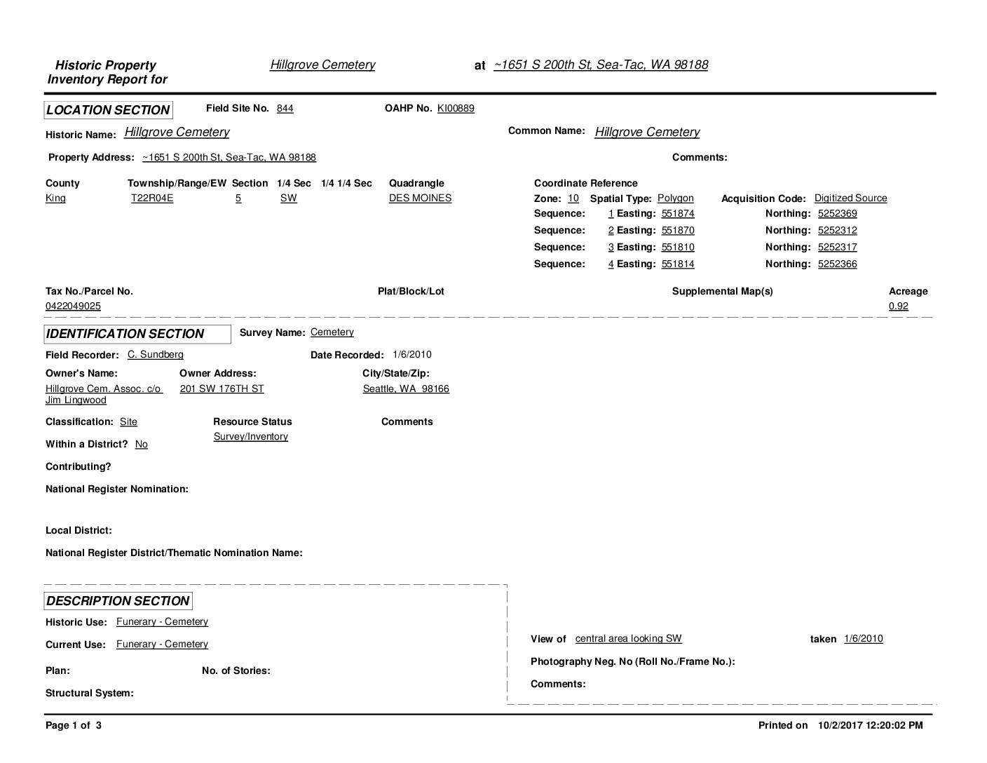 Hillgrove Cemetery Designation Report