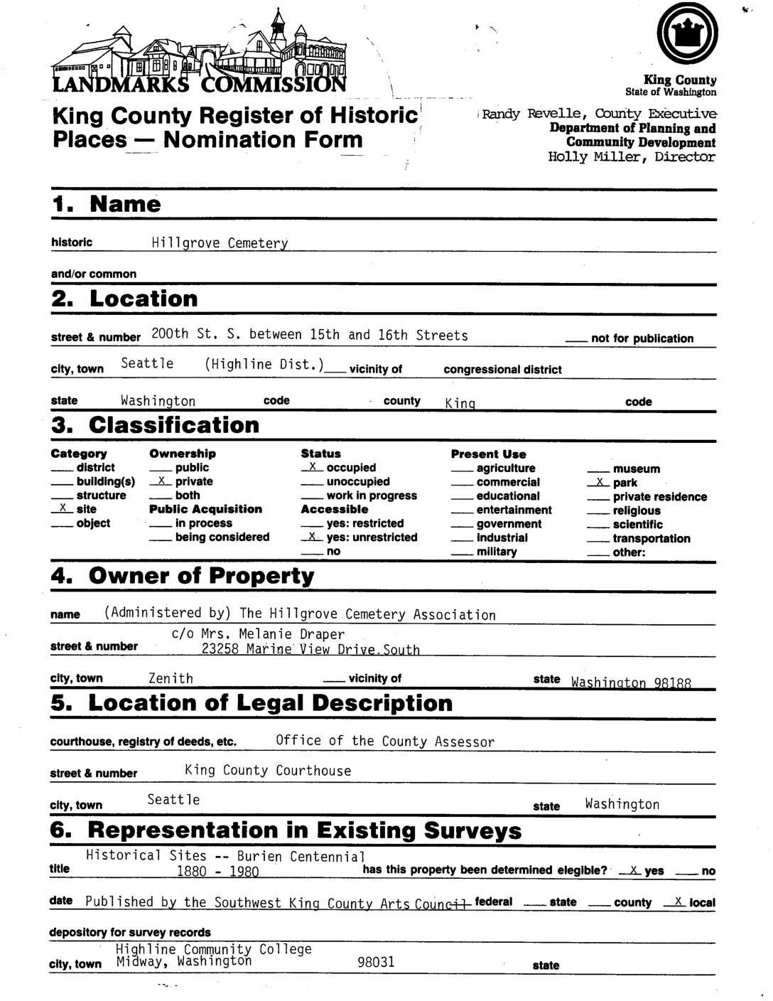 King County Landmark & Historic Site Information Technical Paper No. 1