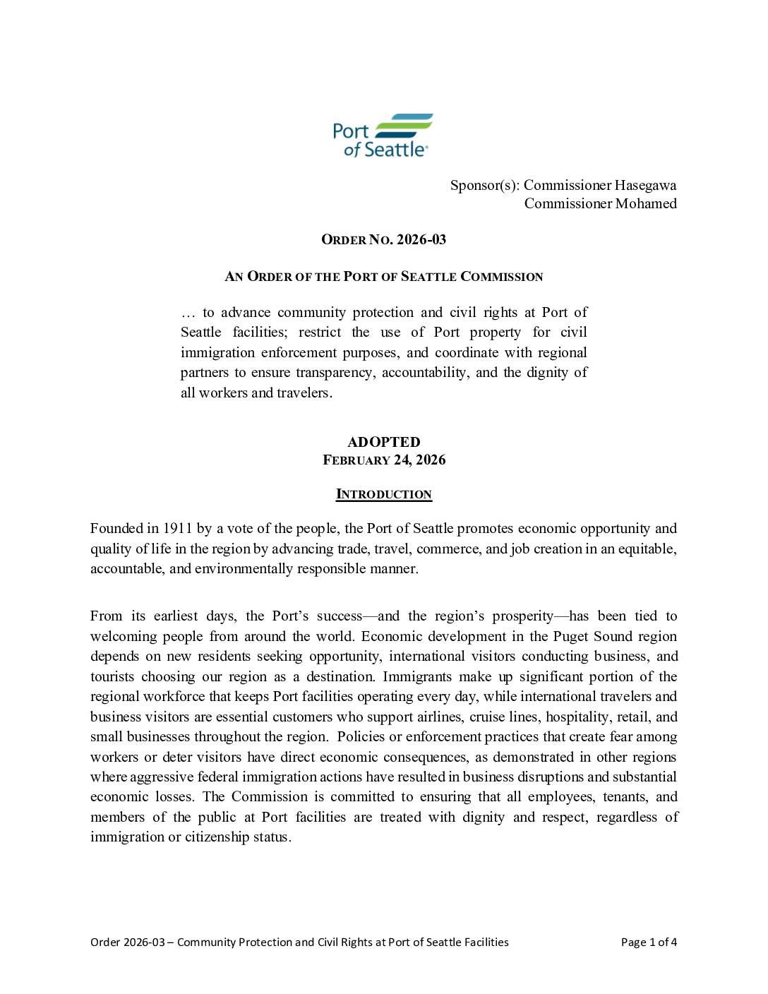 Order 2026-03 – Community Protection and Civil Rights at Port of Seattle Facilities