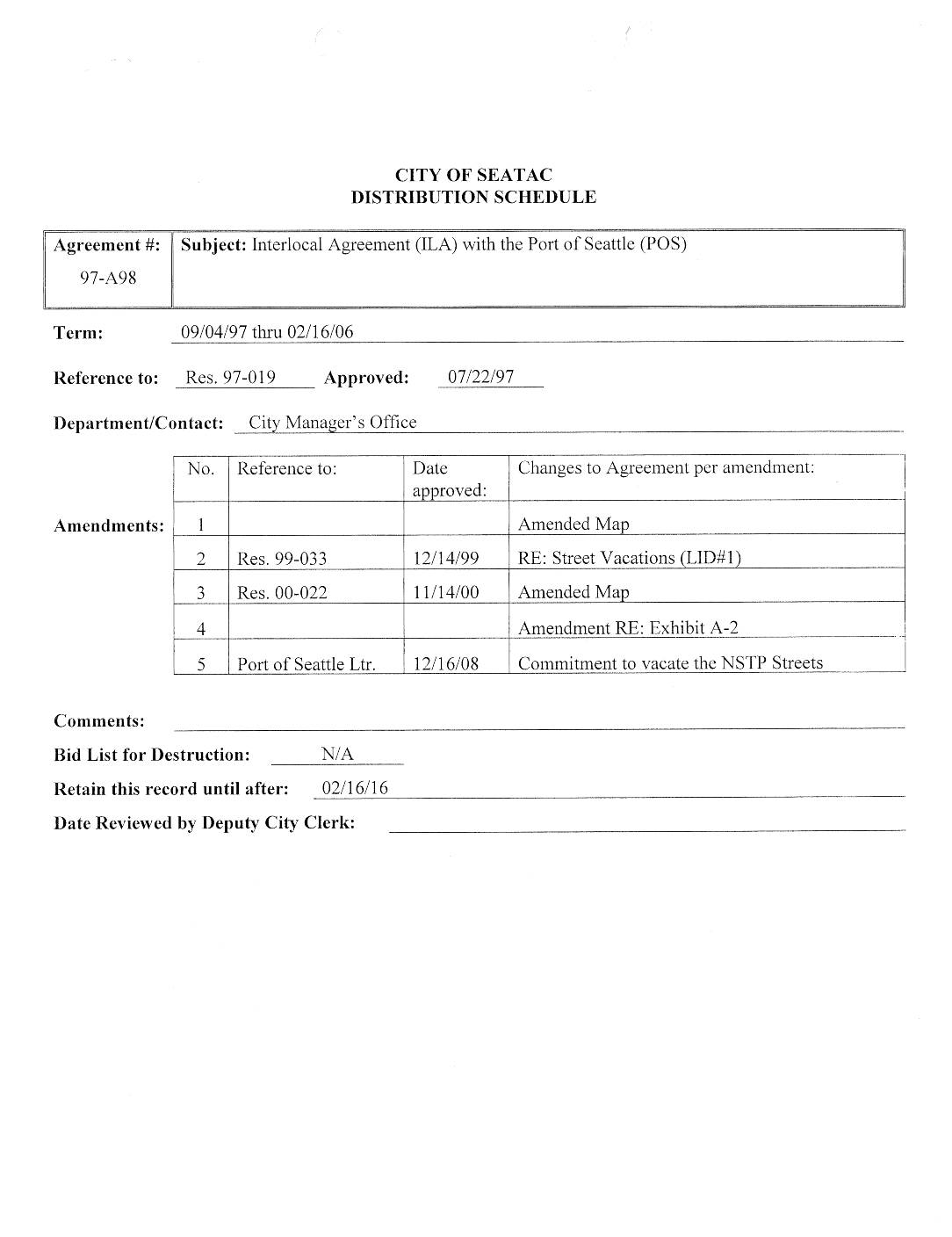 Interlocal Agreement (ILA) City of SeaTac and Port of Seattle September, 4 1997