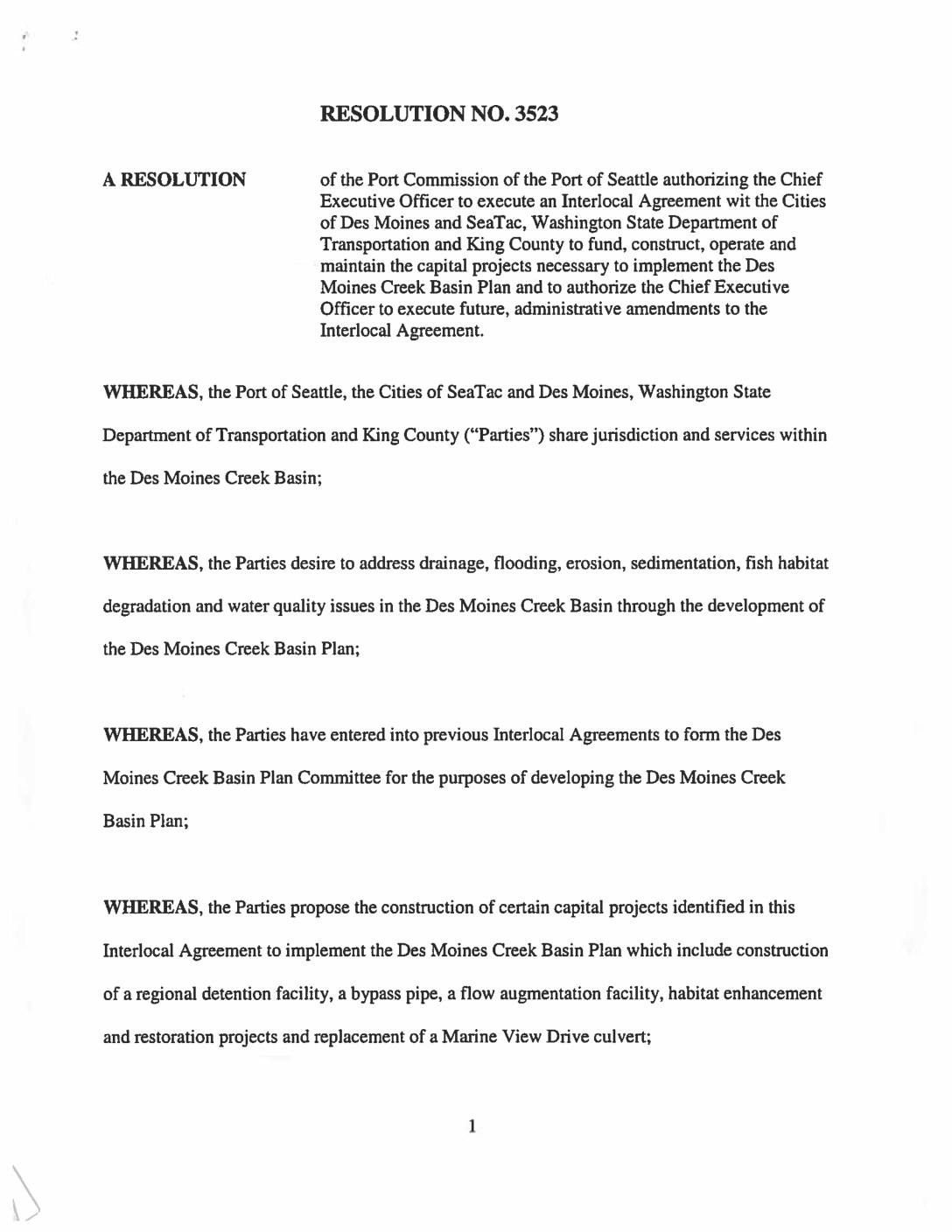 Resolution No. 3523 – Des Moines Creek Basin Plan Interlocal Agreement V2