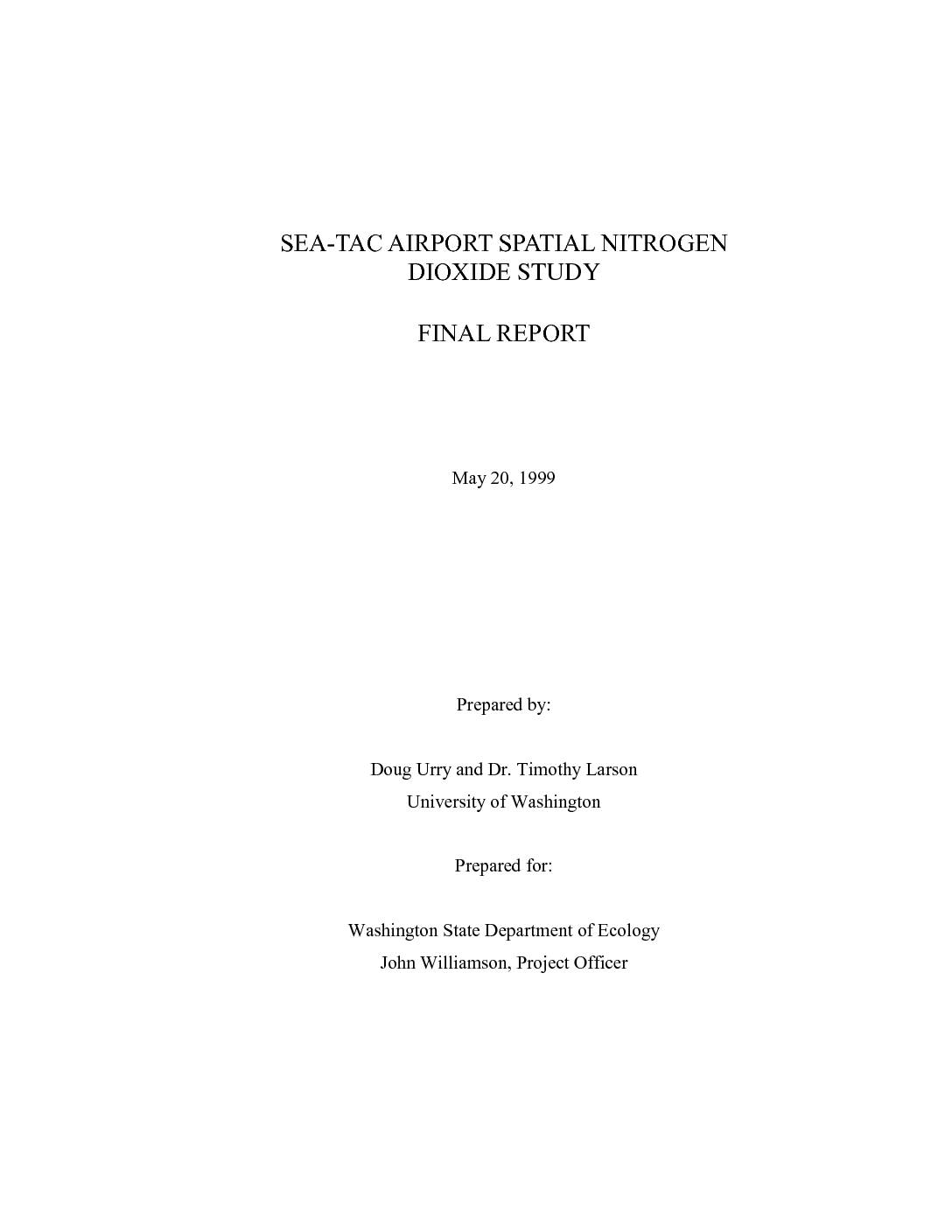 Previous air pollution modeling efforts and current facility expansion activities at Sea-Tac International Airport have raised concerns about elevated nitrogen dioxide (NO2) levels in the surrounding community. The goals for this project were to 1) assess compliance with the 100 micrograms per cubic meter annual national ambient air quality standard (NAAQS) for NO2, 2) quantify any local concentration gradients, and 3) evaluate the impact of aircraft operations on local NO2 levels. The scope of this project included annual NO2 measurements throughout the community; samplers were located in areas near the north and south ends of the airport where aircraft operations would most likely affect ambient concentrations. Three-week integrated NO2 measurements were continuously performed at 16 locations using Yanagisawa NO2 diffusion badges. Additionally, Washington State Department of Ecology (WDOE) performed continuous nitrogen oxides (NOX) measurements using Federal Reference Method chemiluminescent analyzers and collected meteorological data at two of the sampling locations. Annual average NO2 measurements at all sites were well below the NAAQS. Consistent spatial concentration gradients were observed throughout the study. NO2 levels decreased from east to west. NO2 levels generally decreased with distance from both the airport runways and local freeways. Hourly NOX and meteorological data from WDOE monitoring stations were used to identify local source impacts by comparing measured NOX levels by wind direction. Because NOX is primarily emitted as nitric oxide (NO), concentration of this species varied more with wind direction than NO2. Evidence of a small but discernable airport impact on NOX levels was observed near… -