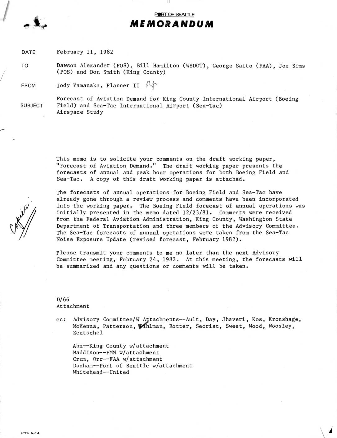 Letter from Jody Yanaka Draft Aviation Forecast