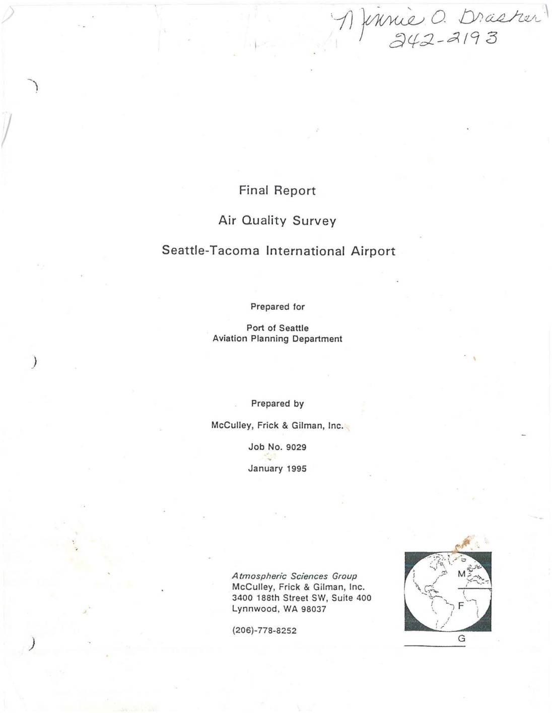 McCulley, Frick & Gilman Final Air Quality Survey for Sea-Tac Airport 1993