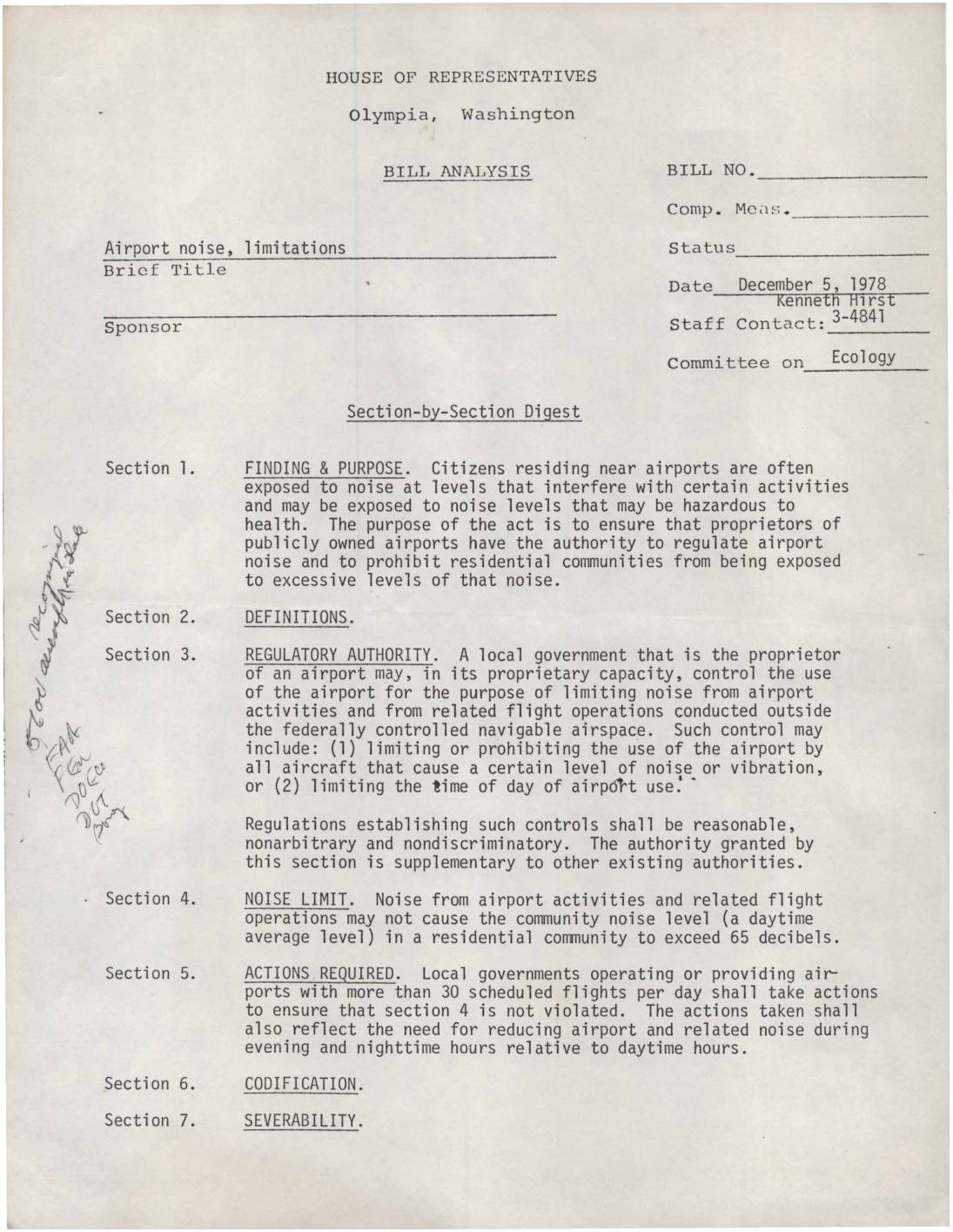 Bill Analysis 3-4841 House Of Representatives Ecology Noise near airports