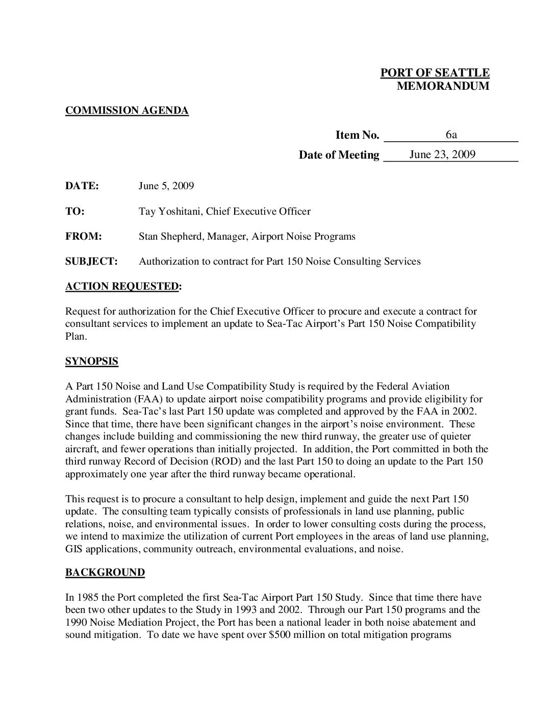 Item 6a Memo Part 150 Noise Consulting Services