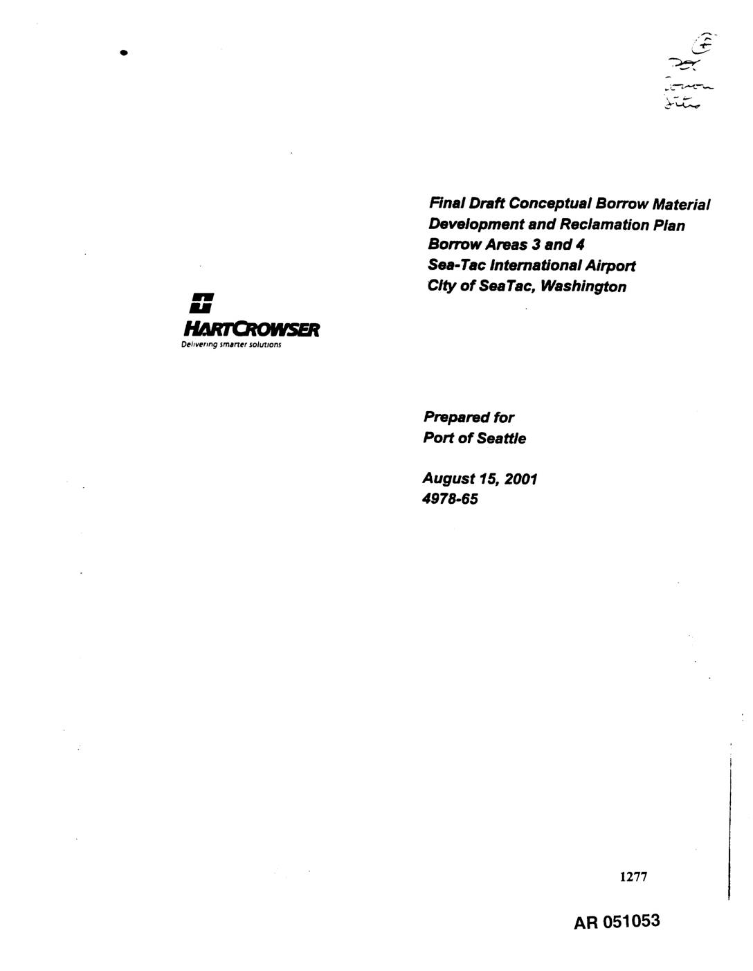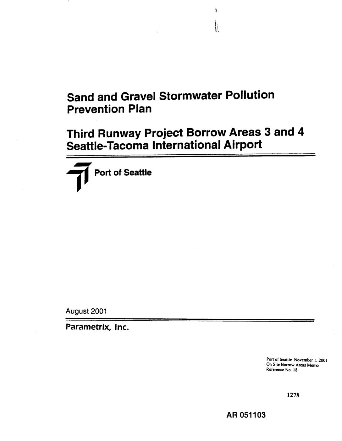 Addendum #4 to the Seattle-Tacoma International Airport Master Plan Final Environmental Impact Statement and Final Supplemental Environmental Impact Statement for Borrow Source Areas 3 and 4 and the Incorporation of the Federal Aviation Administration's NEPA Reevaluation Document Addendum to: Seattle-Tacoma International Airport Master Plan Final Environmental Impact Statement (FEIS} and Final Supplemental Environmental Impact Statement {FSEIS}. The Seattle-Tacoma International Airport Master Plan FSEIS was issued by the Port of Seattle on May 13, 1997, following the provisions of the Washington State Environmental Policy Act {SEPA} under Chapter 43.21C. Revised Code of Washington (RC_, Chapter 197-I I, Washington _m_n_strat/ve Code (WAC}, and Resolution 3028, Port of Seattle, SEPA Policies & Procedures. The Seattle-Tacoma International Airport Master Plan FSEIS is available for review at the Port of Seattle Bid Desk, Pier 69, 2711 Alaskan Way, Seattle, Washington OR Port of Seattle Aviation Planning, 3_ Floor, Terminal Building, Sea-Tac Airport, 8:00 AM to 4:30 PM weekdays. Name of Project_ Borrow Source Areas 3 and 4 and the Incorporation of the Federal Aviation Arlrni_istration's NEPA Reevaluation Document Project Sponsor. Port of Seattle, P.O. Box 1209, Seattle, WA 98111 I. PROJECT DESIGN CHANGES TO BORROW AJIEAS 3 AND 4. Background: The Port of Seattle issued the Final EIS for the proposed Master Plan improvements in February 1996, which was followed by a Supplemental EIS in 1997. The FSEIS for this proposal was issued on May 13, 1997 pursuant to WAC 197-11- 340. The FEIS/FSEIS included a description of borrow source areas proposed for excavation to… -
