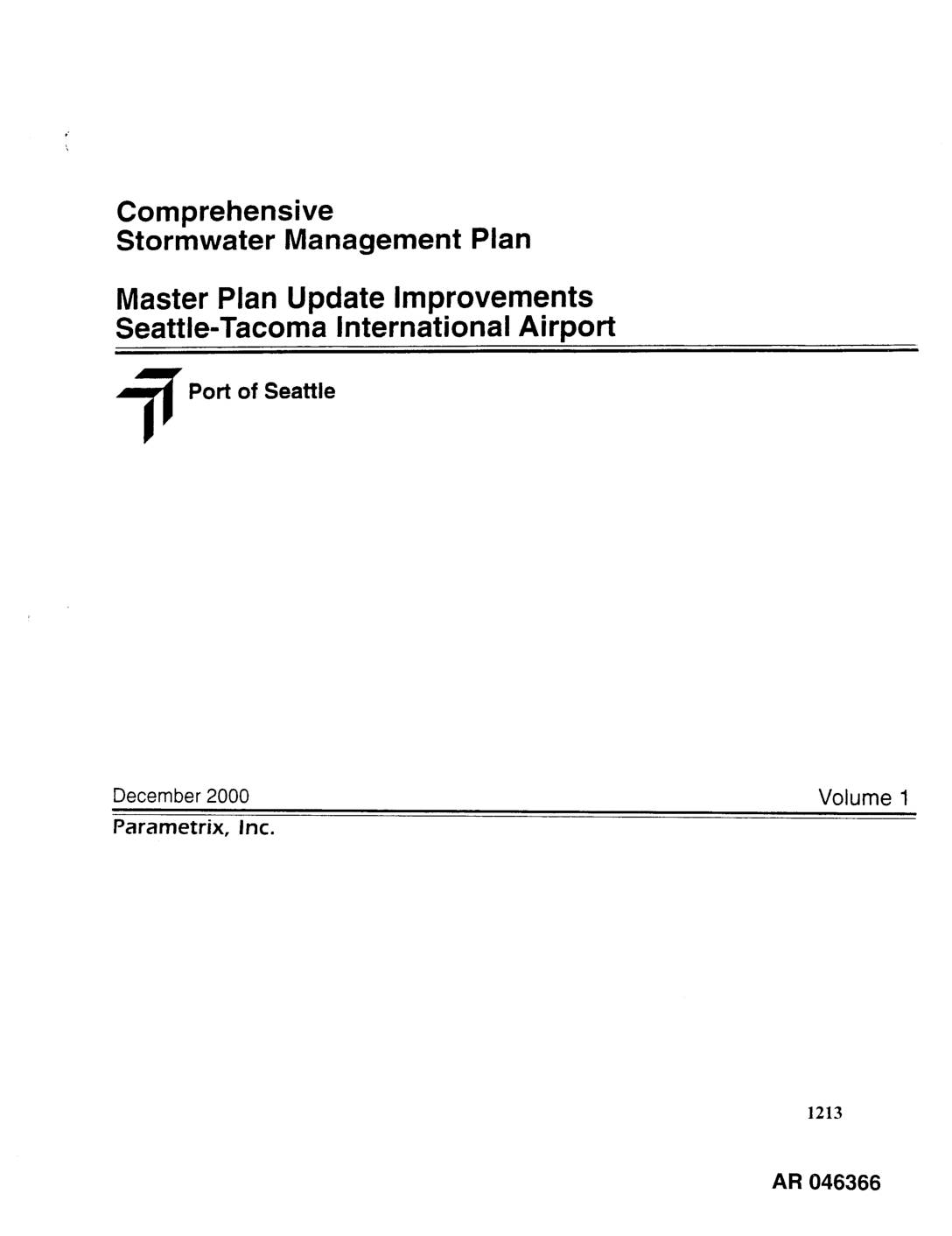This document contains replacement pages developed m response to comments received from the Washington State Department of Ecology (Ecology) on Volumes l through 4 of the December 2000 Comprehensive Stormwater Management Plan (SMP) for the Seattle-Tacoma International Airport Master Plan Update Improvements. A facilitated process was used to document specific revisions required by Ecology to the December 2000 SMP. Each SMP volume contains an itemized list of replacement pages, and the replacement pages are identified by a July 2001 footer. Comprehensive Stormwater Management Plan July 2001 STIA Ma_ter Plan Update Improvements 556-2912-001(28) AR 046368 SMP VOLUME 1 JULY 2001 REPLACEMENT PAGES Preface (beforepg. i) List of Volume 1 Replacement Pages Certificate ofEnmneer (.pg.i) Table of Contents (pgs. ii, iii, iv, and v) Section 2.1.2 (pg. 2-2) Section 2.2.2 (pg. 2-6) Sections 3.2 and 3.3 (pgs. 3-7, 3-7a, and 3-8) Fiumre4-1 (pg. 4-2) Figure 4-2 (pg. 4-3) Table 4-1 (pg. 4--4) Section4.2(pg.4-5) Figure 4-3 (pg. 4-6) Section 4.2.2.1 (pgs. 4-8 and _8a) Table 4-3 (pg. 4-9) Table 4-5 (pg. 4-11) Table 4-6 (pg. 4-14) Figure 4-4 (pg. 4-16) Section 4.5.3.1 (pg. 4-20) Section 5.1 (pg. 5-1) Figure 5-1 (pg. 5-2) Figure 5-2 (pg. 5-3) Section 5.2.1 (pg. 5-4) Figure 5-3 (pg. 5-5) Section 6.1.2.4 (pg. 6-2) Sections 6.1.3, 6.2.1.1, 6.2.1.2, and 6.2.1.3 (pgs. 6-3 through 6-10) Section 6.2.2 (pg. 6-11) Section 6.4.4 (pg. 6-12) Figure 7-1 (pg. 7-2) Section 7.1.2.5 (pgs. 7-8 and 7-8a) Section 7.1.4.1 (pg. 7-9) Section 7.2 (pg. 7-12) Table 7-8 (pg. 7-13) Section 7.8 (pg. 7-23) Section… -