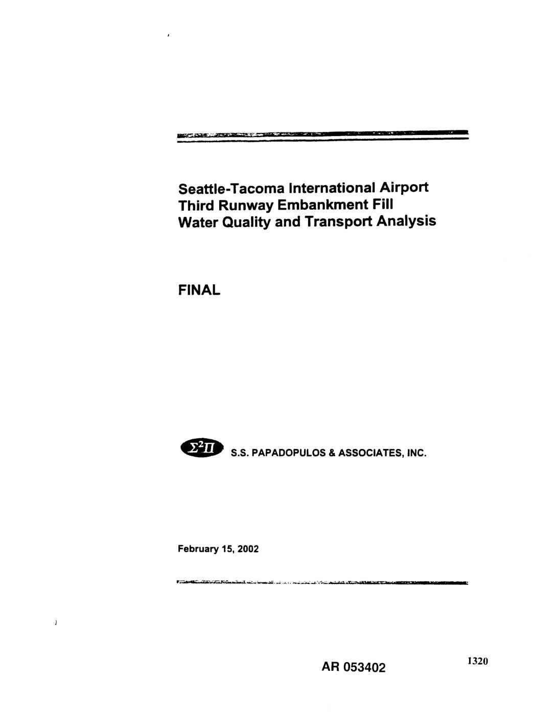 -- = . .mR i li i iiii i I III Seattle-Tacoma International Airport Third Runway Embankment Fill Water Quality and Transport Analysis FINAL O S.S. PAPADOPULOS & ASSOCIATES, INC. February15,2002 AR 053402 ]32o _-_ ii n ipl II II II lUl Seattle-Tacoma International Airport Third Runway Embankment Fill Water-Quality and Transport Analysis FINAL Prepared For: " Portof Seattle Prepared by: (_ S.S. Papadopulos and Associates, Inc.101 N. Capital Way, Suite 107, Olympia, WA 98501 Telephone: 360/709-9540 February 15, 2002 AR 053403 Table of Contents Page .o* List of Figures ....................................................................................................................... m ... List of Tables ...................................................................................................................... m Section 1.0 Introduction 1 1. l Background ................................................................................................... 1 1.2 Objective ....................................................................................................... 1 1.3 Approach ....................................................................................................... 1 Section 2.0 Embankment Fill Criteria 3 2.1 Soil Criteria ................................................................................................... 3 2.2 Water-Quality Criteria ................................................................................... 3 Section 3.0 Data Analysis 4 3.1 Soil Testing ................................................................................................... 4 3.1.I Chemical Analysis of Soils ...................................................................... 4 3.1.2 Adsorption Capacity ................................................................................. 4 3.2 Synthetic Precipitation Leaching Procedure .......................................................... 5 Section 4.0 Numerical Modeling Analysis 6 4.1 Model Configuration ..................................................................................... 6 4.2 Model Parameters .......................................................................................... 7 4.2.1 Flow Parameters ....................................................................................... 7 4.2.2 Transport Parameters ................................................................................ 8 4.3 Initial and Input Values ................................................................................. 9 4.3.1 Flow Values .............................................................................................. 9 4.3.2 Transport Values ...................................................................................... 9 4.4 Simulations .................................................................................................. 10 4.4.1 General Embankment Fill ...................................................................... 10 4.4.2 Harem Creek Fill .................................................................................... 10 4.4.3 First Avenue Bridge Fill and Black River Quarry Fill ........................... 11 4.4.4 Sensitivity Analysis ................................................................................ 11 4.5 Modeling Results ......................................................................................... 12 AR 053404 4.5.1 Transport of Metals ................................................................................ 12 4.5.2…