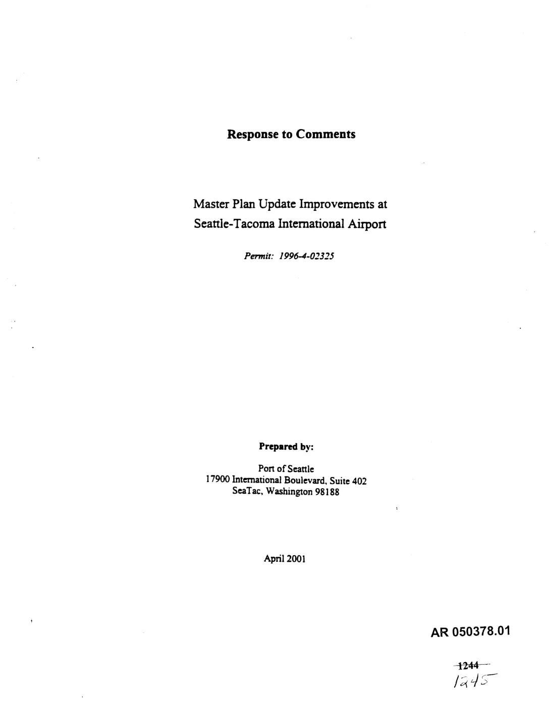 On December 27, 2000, the U.S. Army Corps of Enlnneers issued a second revised public notice concerning the Section 404 application under the Federal Clean Water Act for the proposed Master Plan Update improvements at Seattle-Tacoma Int_mntional Airport. This document has been prepared to provide the regulatory agencies with responses to agency and public comments concerning this application from the Port of Seattle perspective. This document is _ as follows: I. Summary (Introduction and Summary of Chenges in the Port's Application Since 1999) II. General Responsesto Comments m. Response to Agency Letters • Response to Torn Lust_'s Mgmo to Julia Patmamn • Response to Muckleshoot Tribe • Response to Airport Community Coalition commumties and their Technical Consultants a. Helsell Fettennan h. Columbia Biological b. Stephen Hockaday i. NorthwestHydraulics c. GeoffGosling j. Norman Wildlife Consulting d. Thomas Lane Associates k. Paschal Osbom e. GeoSyntec I. Sheldon & Associates f. Azous Environmental m. WaterResom_ Consulting g. BioAnalysts n. Smith & Lowney IV. Responses to Citizens, Groups and Elected Officials - letters, mils, faxes, hearing cards and transcript V. Earlier Public Notice Comments and Responses 0_ior to 1999 Public Notice) • Overview of how new material changes earlier responses • Earlier Public Comments and Responses Sections II through IV respond from the Port's perspective to comments received since the 1999 public notice. Section V contains the Port of Seattle's responses to all comments received prior to the 1999 notice. It is important to note that the responses to comments in Section V have… -