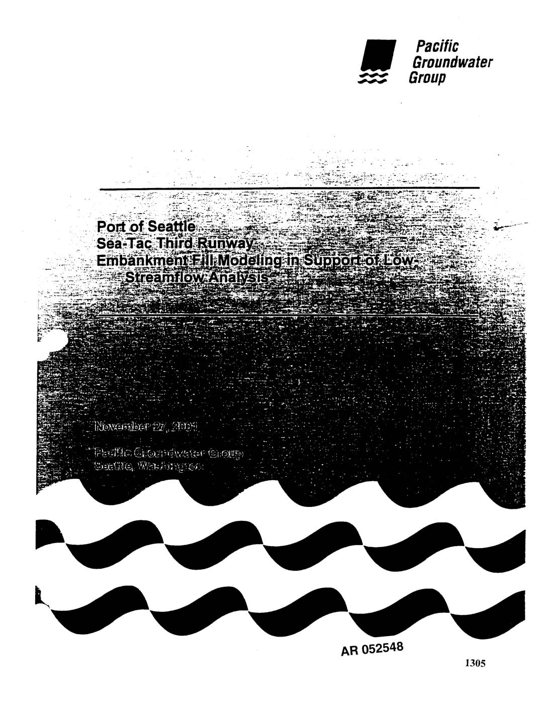 Appearances: PETER J. EGLICK; KEVIN L. STOCK; MICHAEL WITEK; HELSELL FETTERMAN; RACHAEL PASCHAL OSBORN; RICHARD A. POULIN; JEFF B. KRAY; THOMAS J. YOUNG; GILLIS E. REAVIS; ROGER PEARCE; STEVEN G. JONES; DAN SWENSON; ROBERT BARWIN; GEORGE SCHLENDER; WILLIAM ROZEBOOM; CLIFFORD DOUG RUSHTON; NUMBER DESCRIPTION IDENTIFIED ADMITTED | Witnesses: DAN SWENSON; ROBERT BARWIN; GEORGE SCHLENDER; WILLIAM ROZEBOOM; CLIFFORD DOUG RUSHTON | Exhibits: 1178 Pacific Groundwater Group SeaTac Runway Fill Hydrologic Studies; 0705 Photograph of Failure in the Fill Embankment; 0578 Application for Change/ Transfer of Water Right; 0758 WRATS Report; 2132 Public Notice of Application for Permit; 0757 Guide to Instream Flow Setting in Washington State; 0426 Storm Water Receiving Environment Monitoring Report; 0006 Annual Stormwater Monitoring Report for Seattle-Tacoma International airport; 1128 Cosmopolitan Engineering Group Dissolved Oxygen Deicing Study -