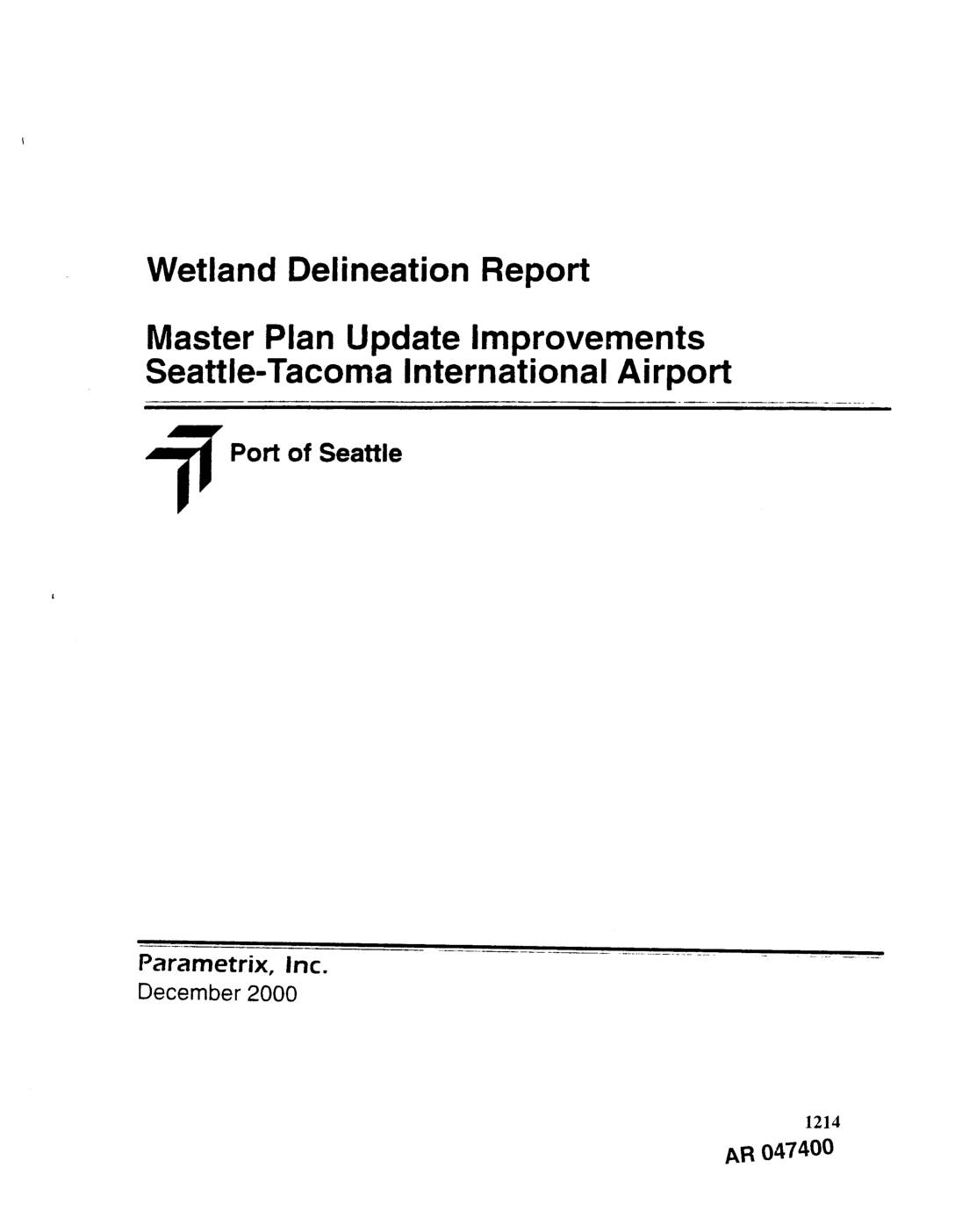 3.2.5 South Aviation Support Area (SASA)/Tyee Valley Golf Course ............. 3-53 3.2.6 Industrial Waste System (IWS) .................................................................. 3-58 3.2.7 SASA Detention Pond Area ....................................................................... 3-59 4. SUMMARY .......................................................................................................................... 4-1 5. REFERENCES ...................................................................................................................... 5-1 APPENDICES A WETLAND DELINEATION REPORT - AUBURN MITIGATION SITE B FIELD DATA SHEETS (Bound Separately) C PKIOR CONVERTED CROPLANDS AT THE VACCA FARM SITE D MAP ATLAS E PREVIOUSLY DELINEATED WETLANDS Wetland Delineation Report - Master Plan Update Improvement December i 1, 2000 Seattle Tacoma International Airport, Port of Seattle ii 5J6-2912-001 (41) Parametrix, Inc. G.._Dmw,_,o_cgt291._JJ291101141w_,_a,U_mal Wetlard _ llel_n.d_ AR 047402 LIST OF VlGURES Figure Page Location of Seattle-Tacoma International Airport ............................................................... 1-3 Wetland Study Area for the Master Plan Update Improvements at STIA ........................... 1-4 Location of Existing Water Features, Stormwater Facilities, Watershed Boundaries. and Acquisition Area of STIA .............................................................................................. 3-2 Wetlands in the Miller Creek Basra Near STIA ................................................................... 3-4 Wetlands in the Des Momes Creek Basra Near STIA .......................................................... 3-5 Aerial Photograph of Borrow Area 1 (1980) ...................................................................... 3-44 Aerial Photograph of Borrow Area 1 (1996) ...................................................................... 3-45 LIST OF TABLES Table Key to plant indicator status .................................................................................................. 2-3 Plant species observed in the STIA Master Plan Update study area.................................... 3-8 Summary of wetland and Other Waters of the U.S. areas in the STIA Master Plan Update improvements area ................................................................... 3-11 Significant wetlands near the STIA project area ................................................................ 3-16 Wetland Delineation Report - Master Plan Update Improvement December I 1, 2000 SeattleParanmt_,Tacoma_¢.Internati°nal A_rport, Port of Seallle. iii 556-2912-001 (41) Gl'g)mm_g1291.%L_.',lPI,._lWIv,wlaglIF_llP/_kp_d_ IMm_lb¢ AR 047403… -