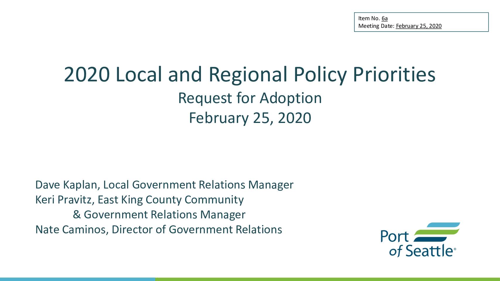 2020 Local and Regional Policy Priorities Request for Adoption February 25, 2020 -