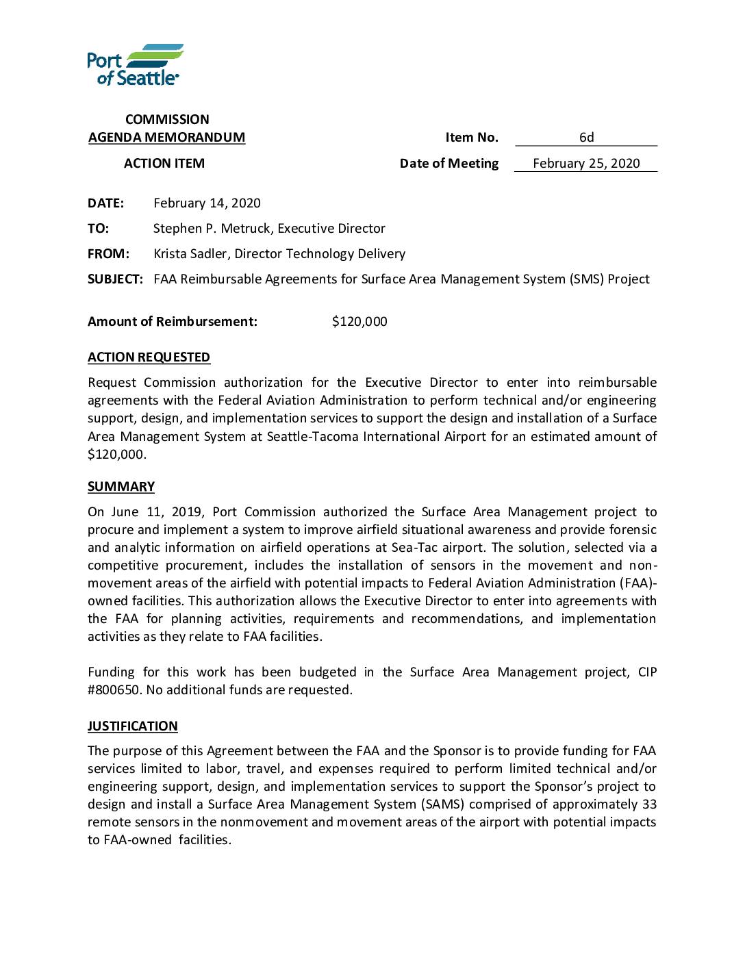Port of Seattle Regular Meeting, February 25, 2020 – Item 6a Supplement