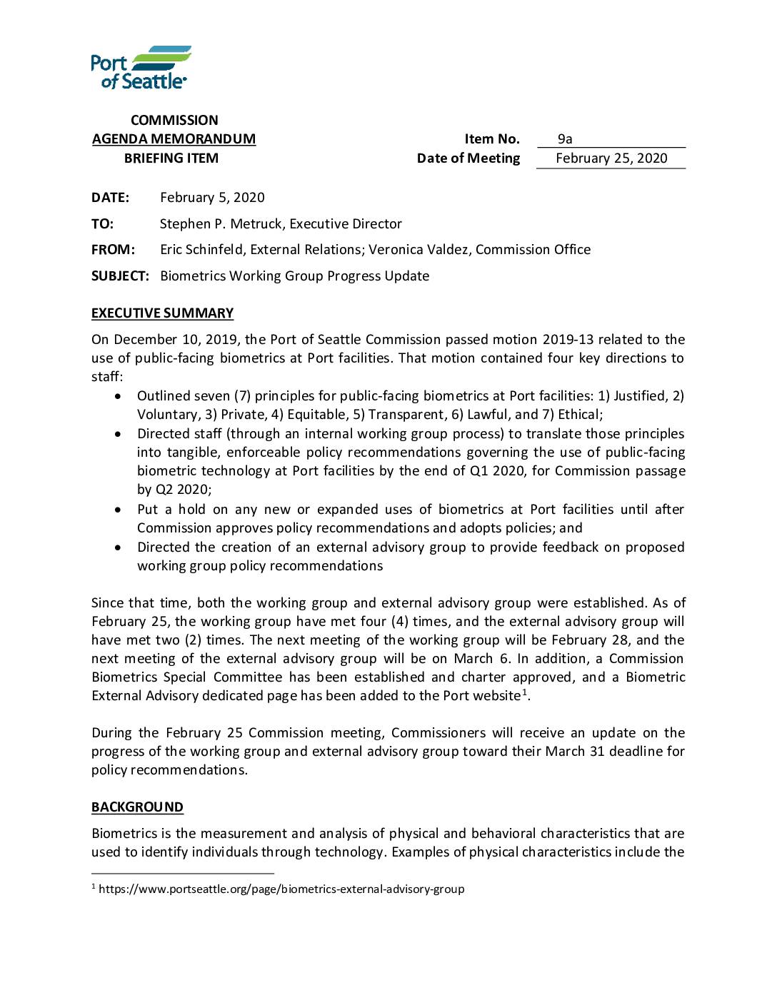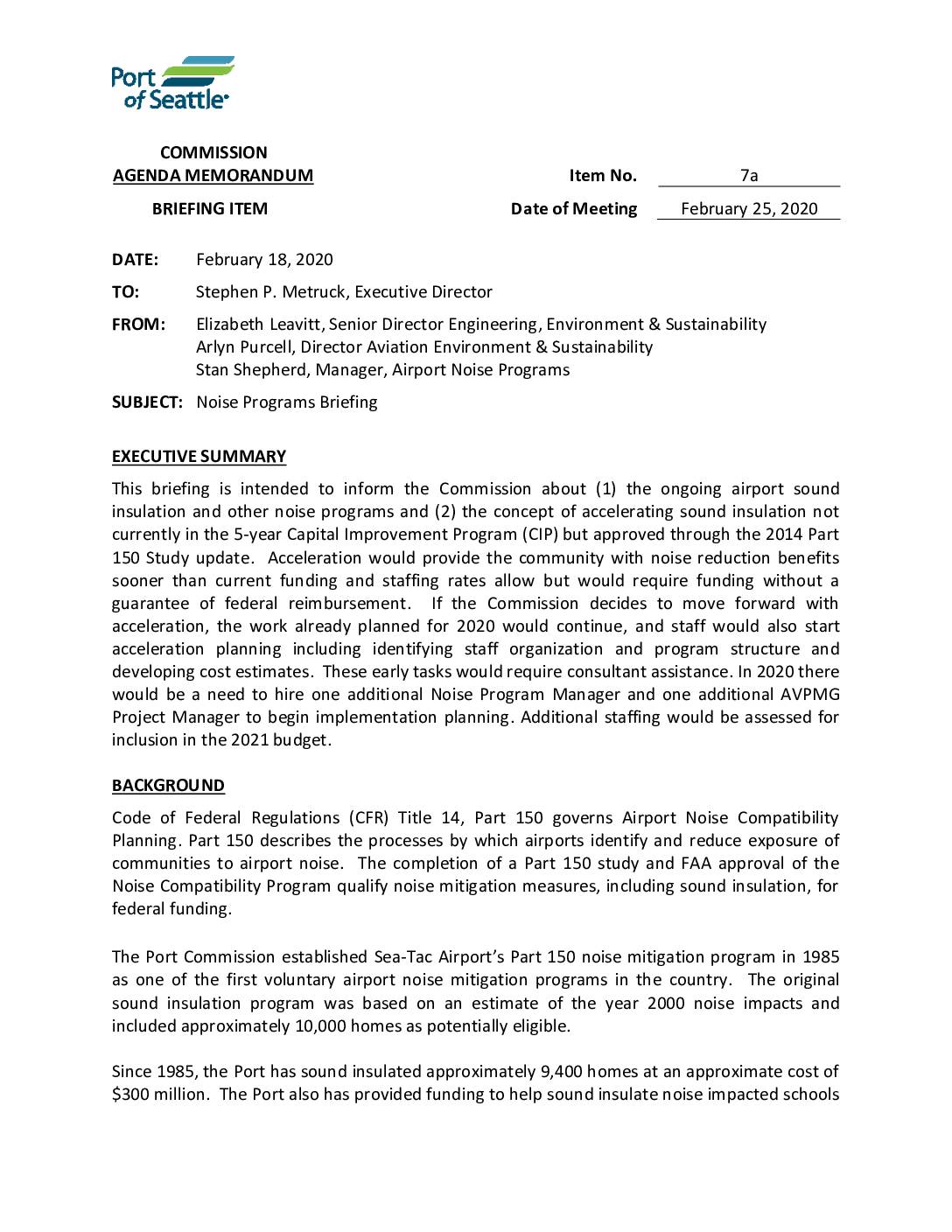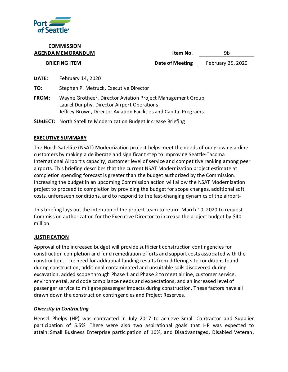 Port of Seattle Regular Meeting, February 25, 2020 – Item 9a Supplement