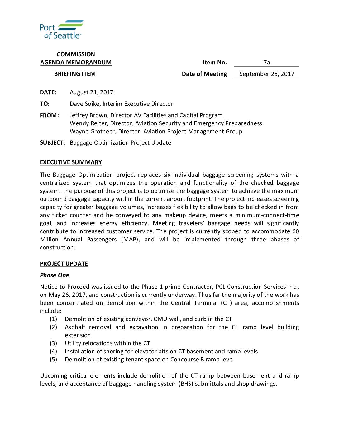 Port of Seattle Regular Meeting, September 26, 2017 – Item 7b Supplement