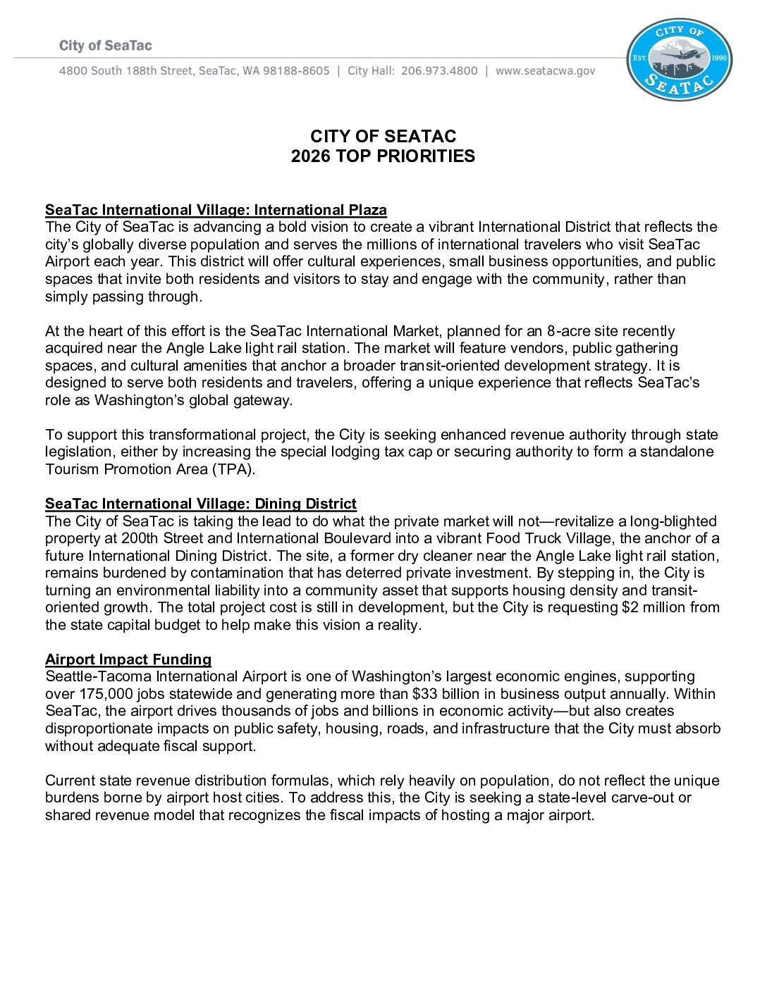 City of SeaTac 2026 Legislative Agenda