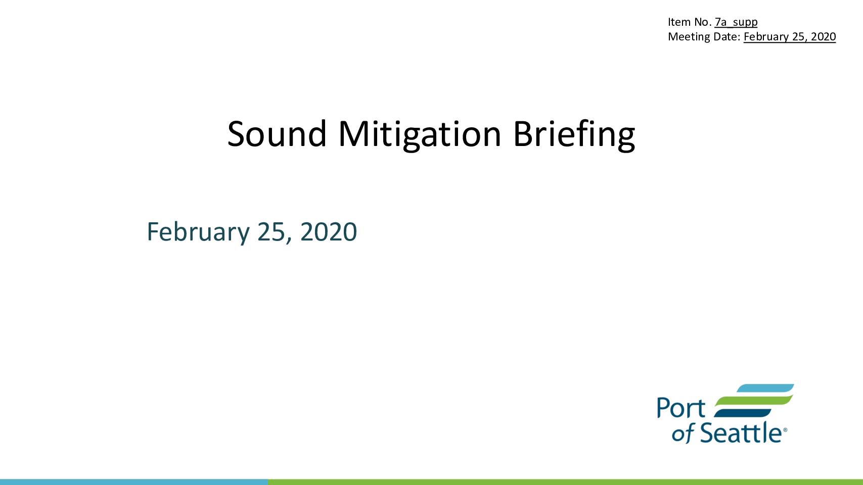 Sound Mitigation Briefing – Accelerated Sound Insulation Program, February 25, 2020